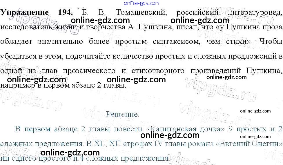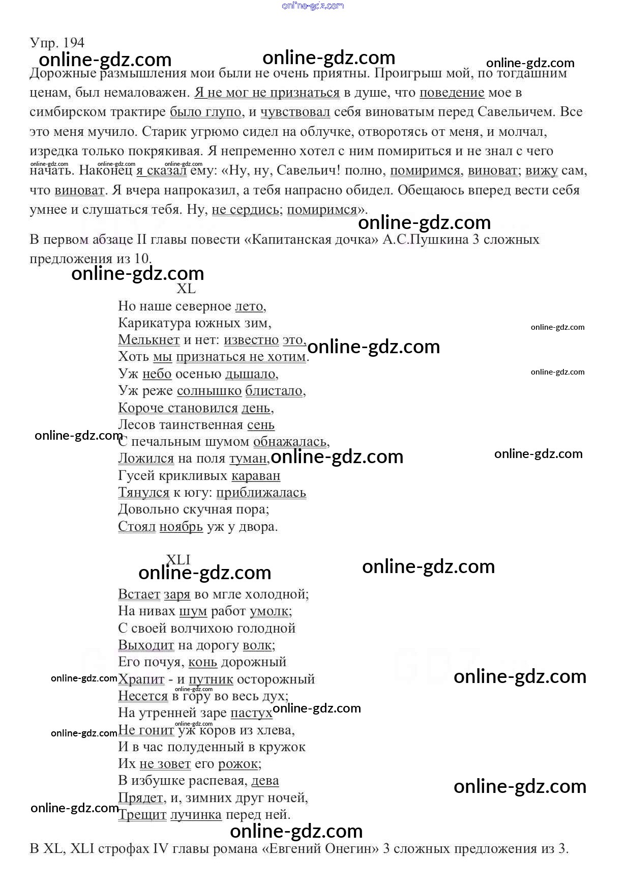 Готовые домашние задания по Русскому языку за 9 класс Учебник Тростенцова, Ладыженская 2014 - Упражнения 194