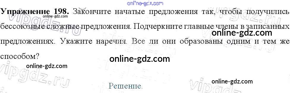 Готовые домашние задания по Русскому языку за 9 класс Учебник Тростенцова, Ладыженская 2014 - Упражнения 198