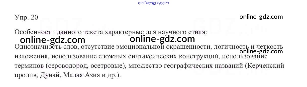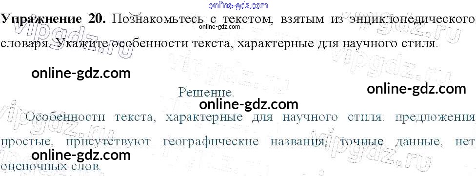 Готовые домашние задания по Русскому языку за 9 класс Учебник Тростенцова, Ладыженская 2014 - Упражнения 20