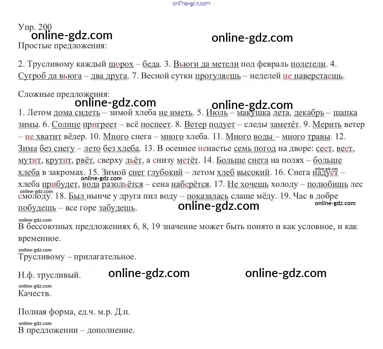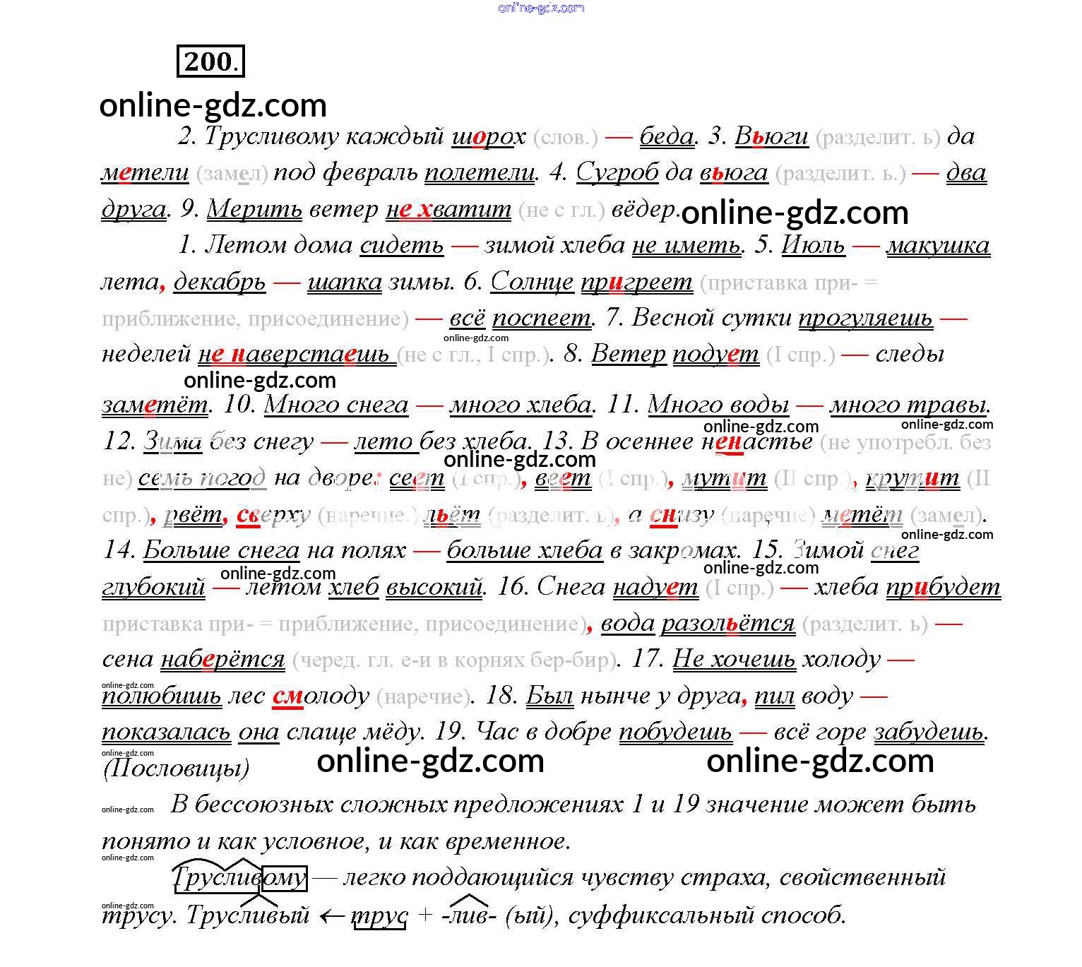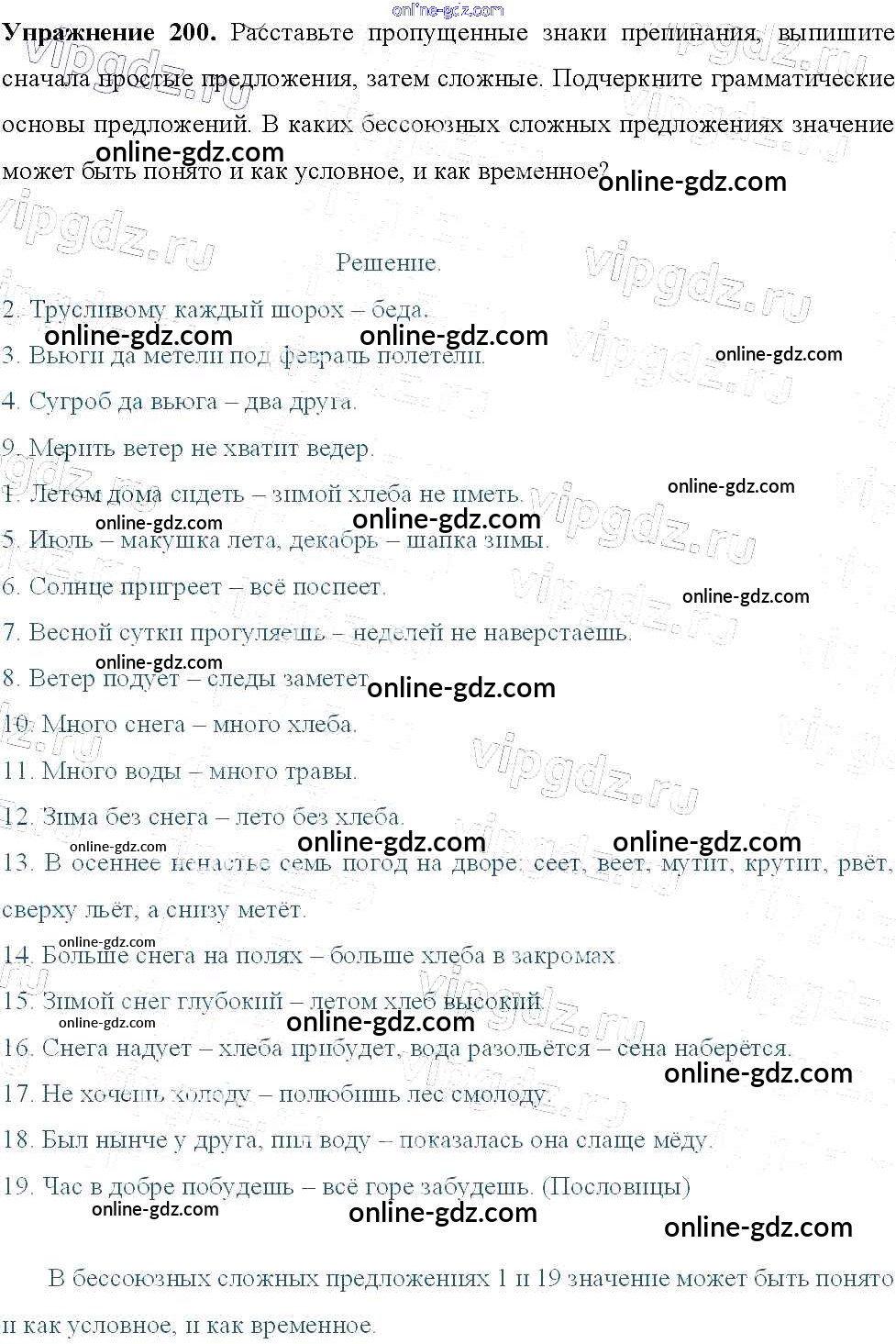 Готовые домашние задания по Русскому языку за 9 класс Учебник Тростенцова, Ладыженская 2014 - Упражнения 200