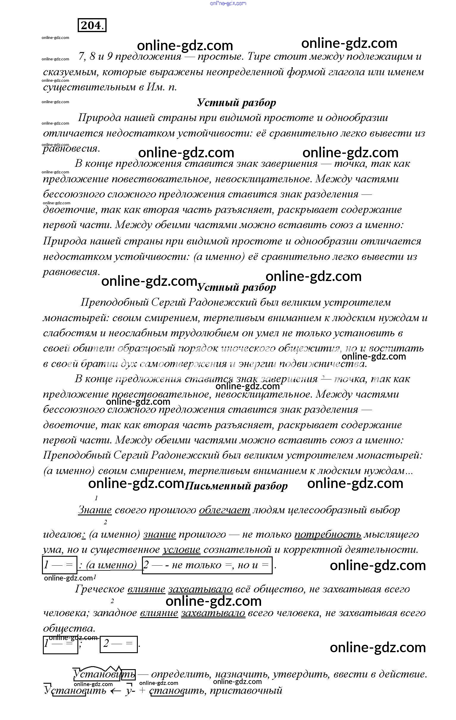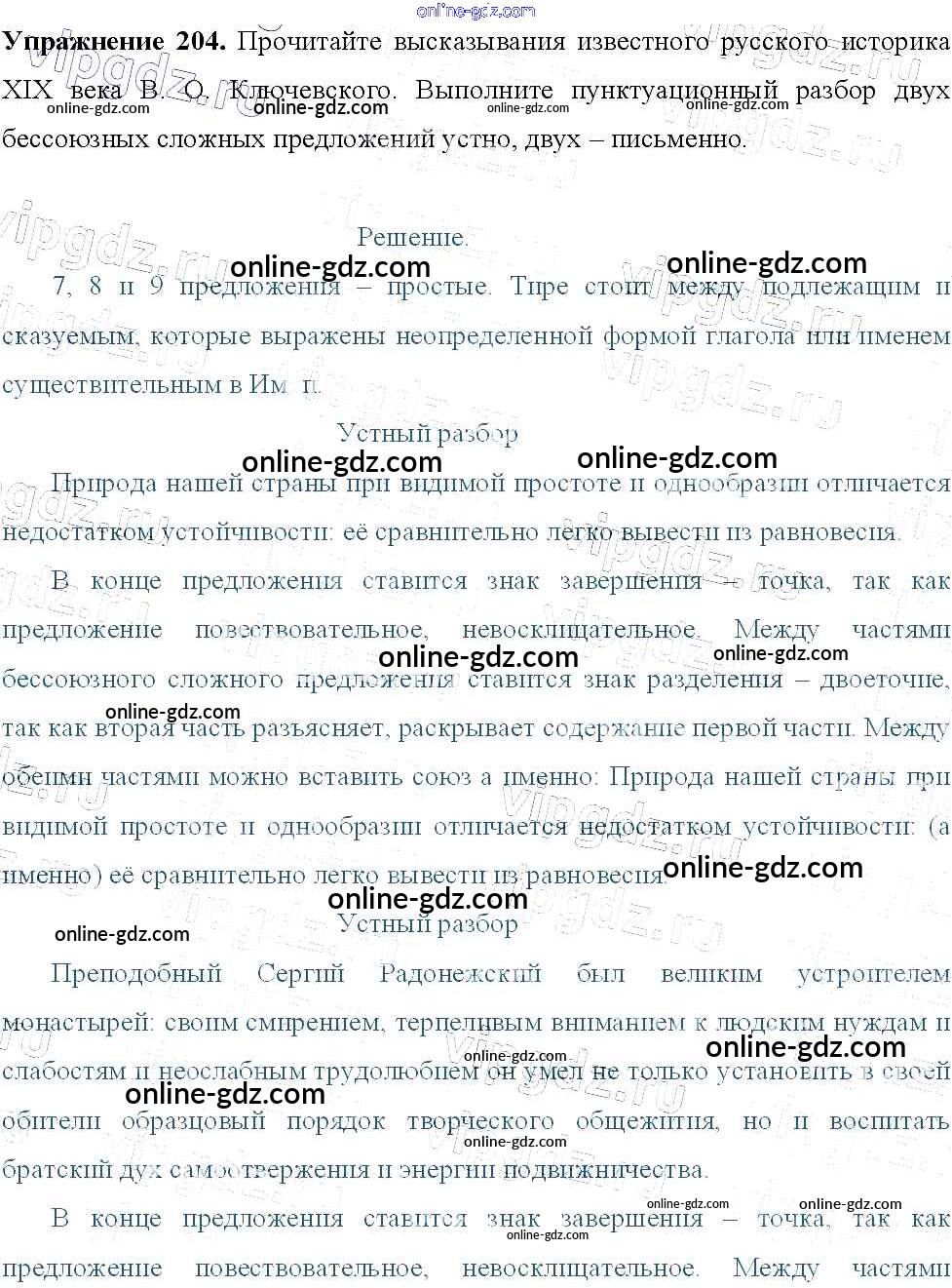 Готовые домашние задания по Русскому языку за 9 класс Учебник Тростенцова, Ладыженская 2014 - Упражнения 204