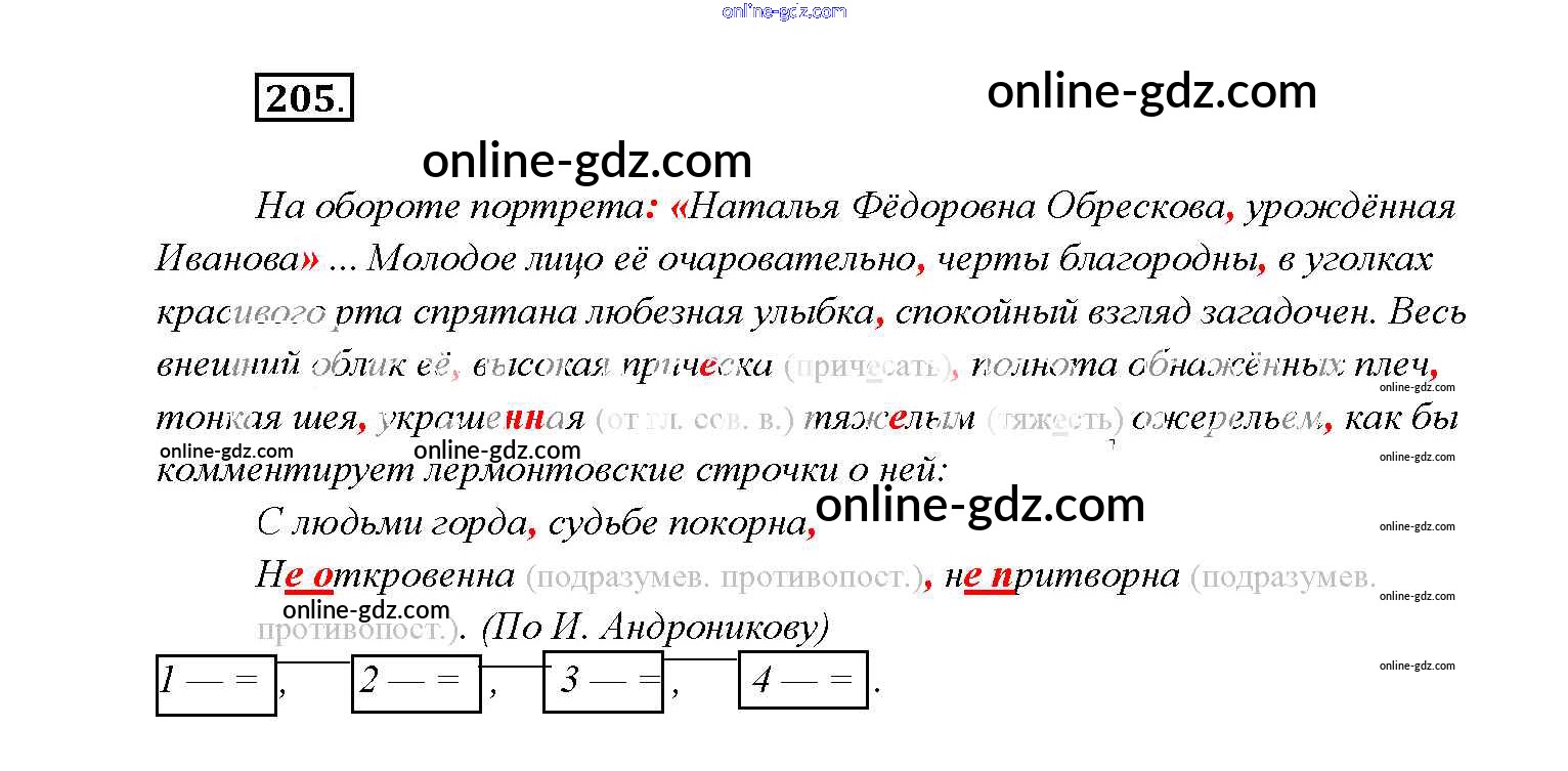 Готовые домашние задания по Русскому языку за 9 класс Учебник Тростенцова, Ладыженская 2014 - Упражнения 205