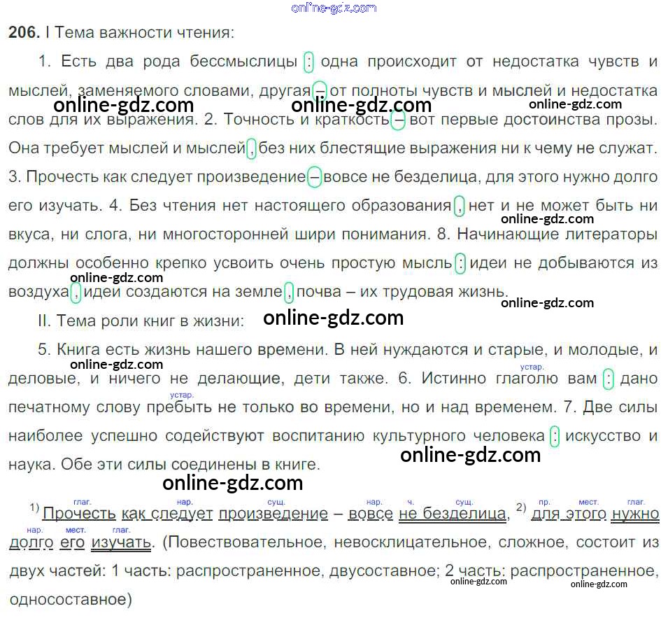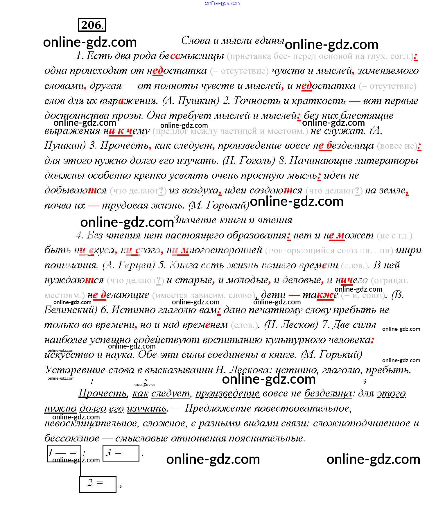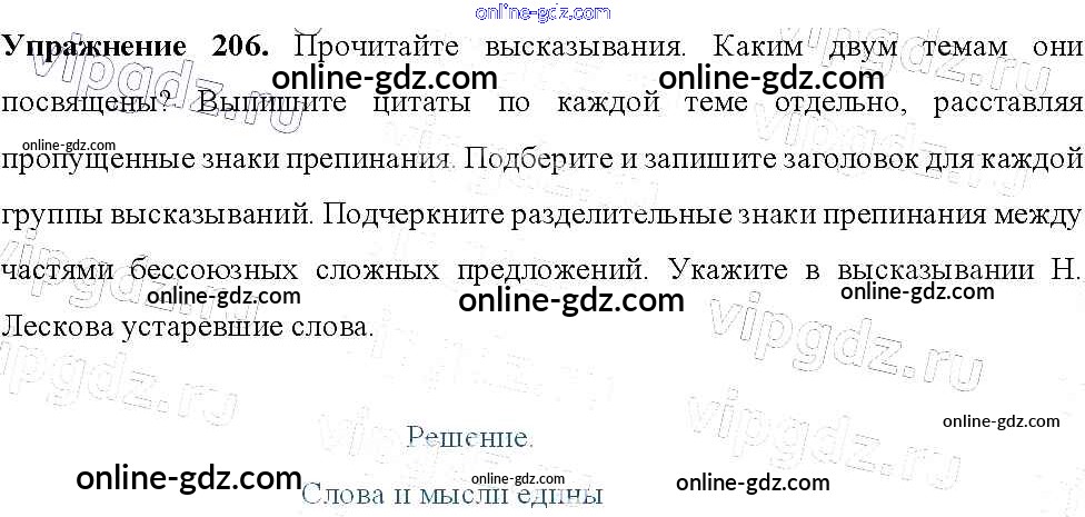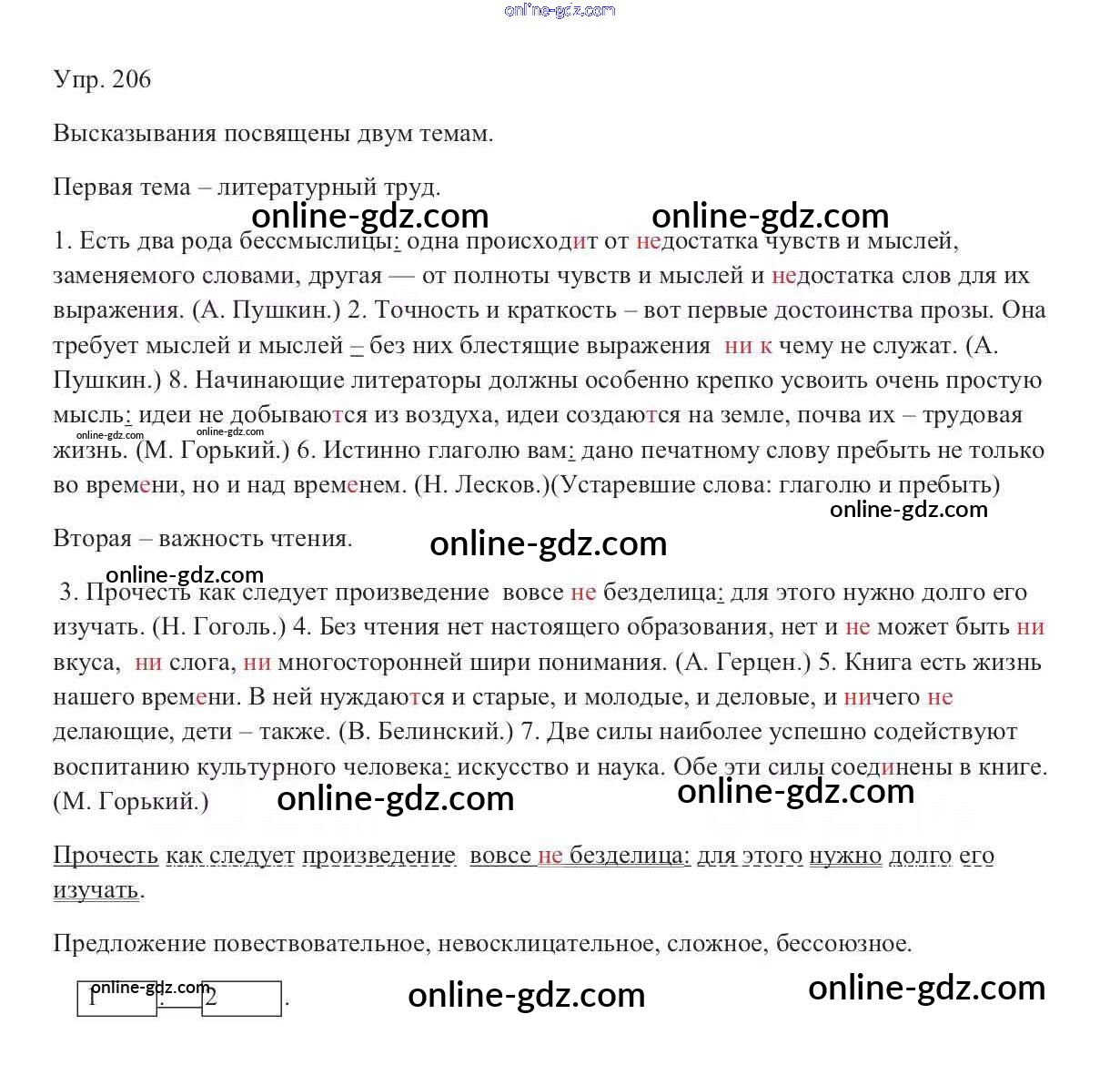 Готовые домашние задания по Русскому языку за 9 класс Учебник Тростенцова, Ладыженская 2014 - Упражнения 206