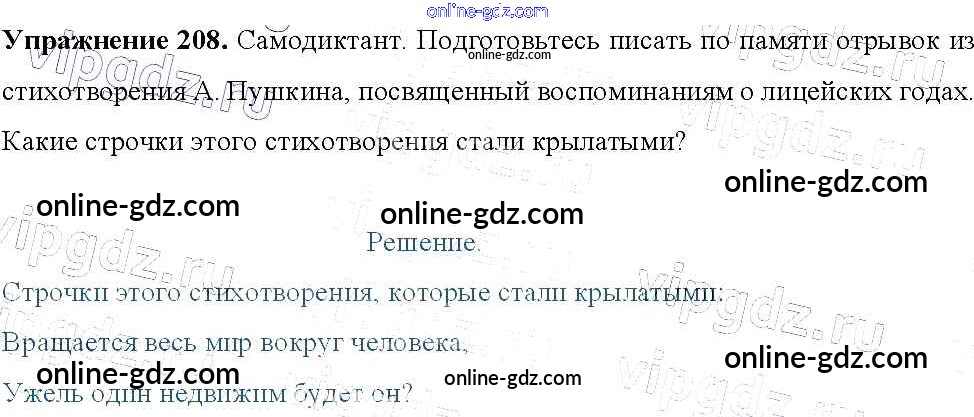 Готовые домашние задания по Русскому языку за 9 класс Учебник Тростенцова, Ладыженская 2014 - Упражнения 208