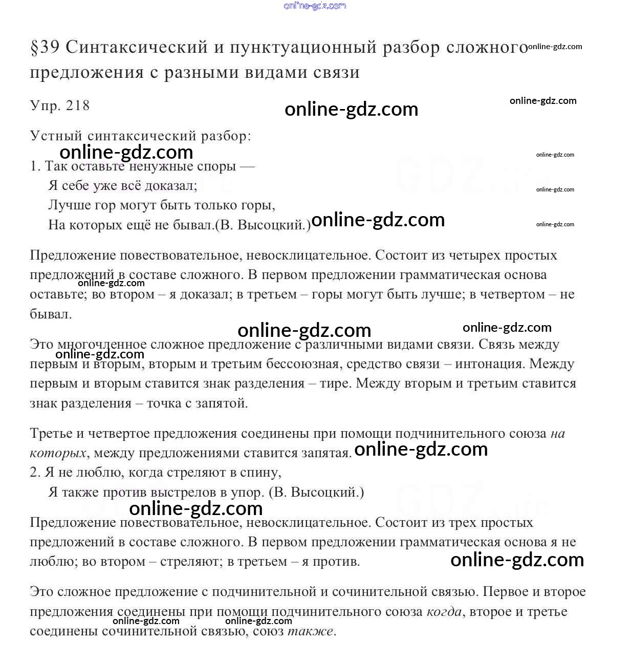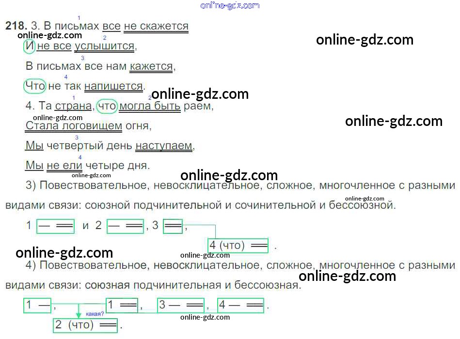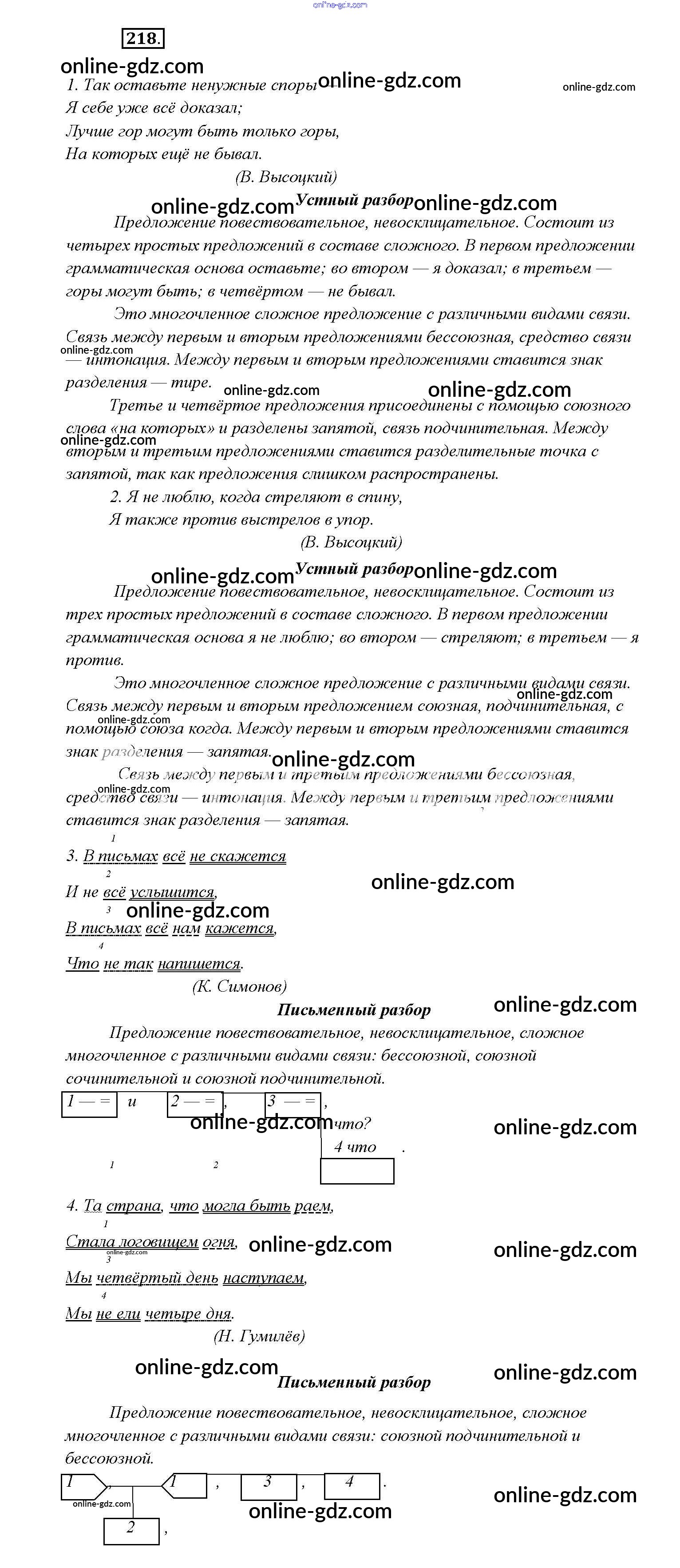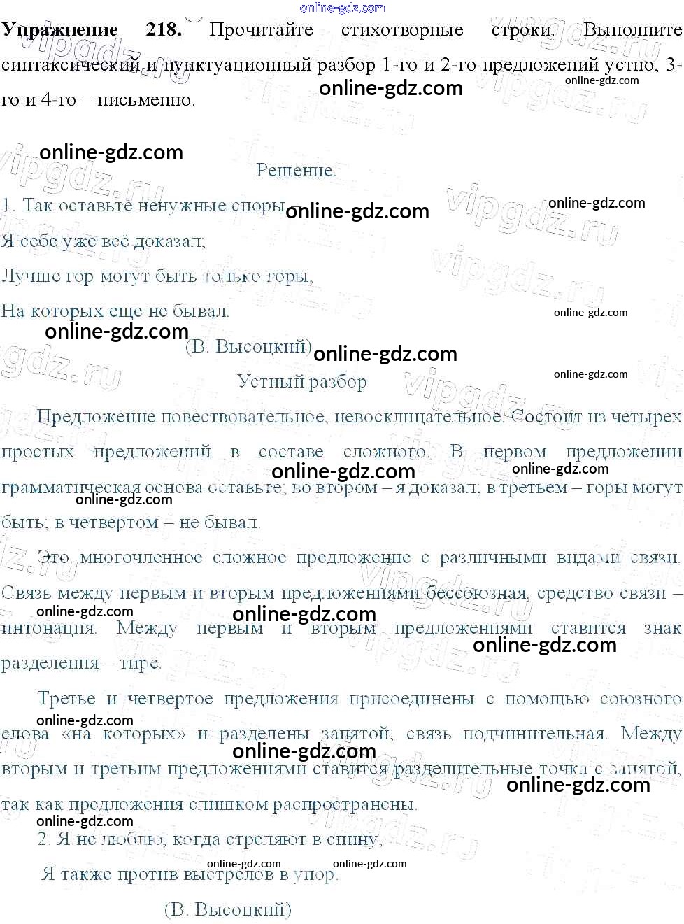 Готовые домашние задания по Русскому языку за 9 класс Учебник Тростенцова, Ладыженская 2014 - Упражнения 218