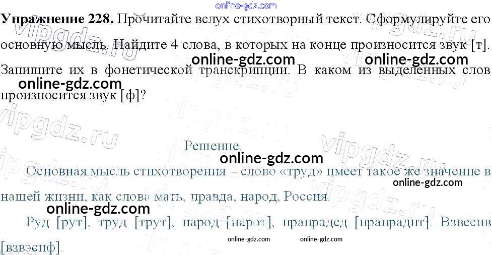 Готовые домашние задания по Русскому языку за 9 класс Учебник Тростенцова, Ладыженская 2014 - Упражнения 228