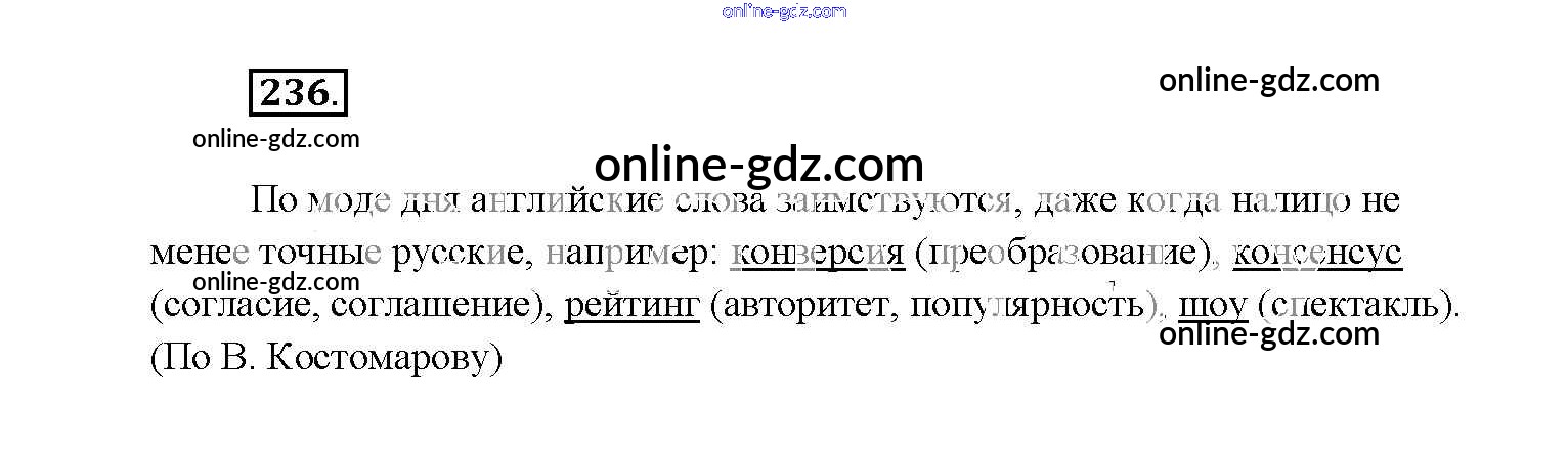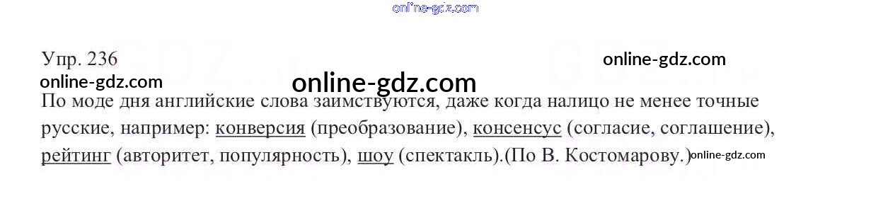 Готовые домашние задания по Русскому языку за 9 класс Учебник Тростенцова, Ладыженская 2014 - Упражнения 236