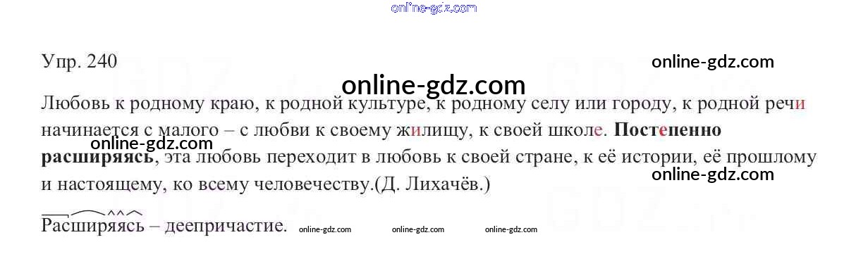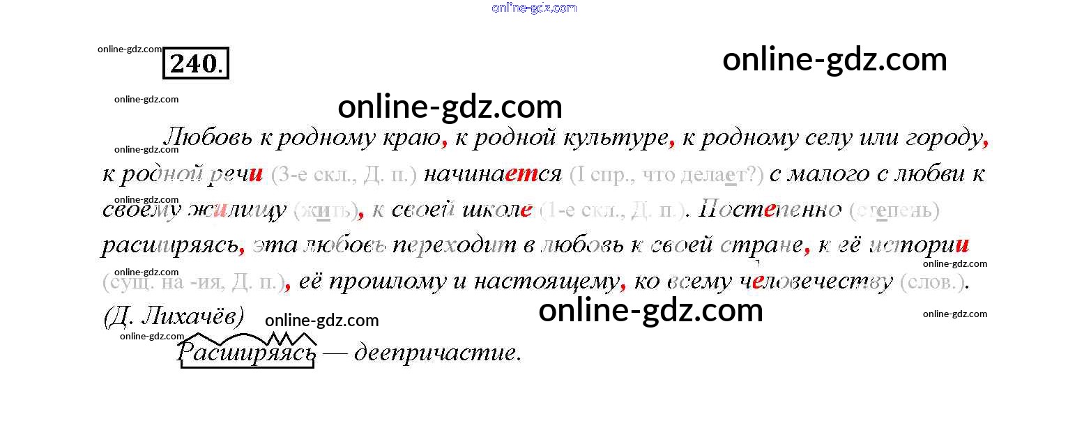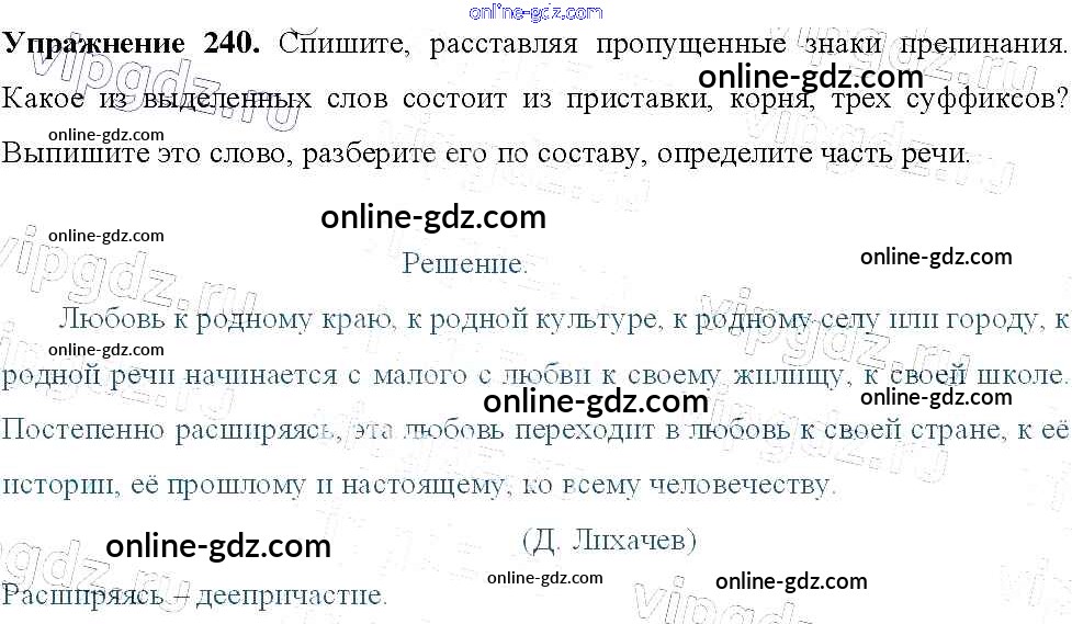 Готовые домашние задания по Русскому языку за 9 класс Учебник Тростенцова, Ладыженская 2014 - Упражнения 240