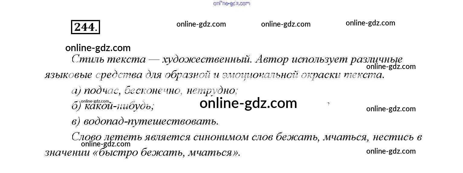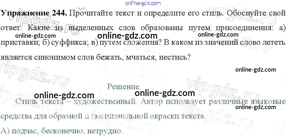 Готовые домашние задания по Русскому языку за 9 класс Учебник Тростенцова, Ладыженская 2014 - Упражнения 244