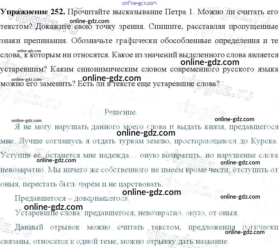 Готовые домашние задания по Русскому языку за 9 класс Учебник Тростенцова, Ладыженская 2014 - Упражнения 252