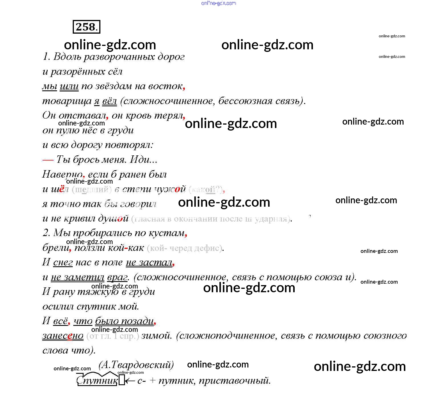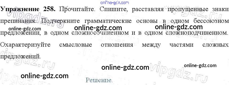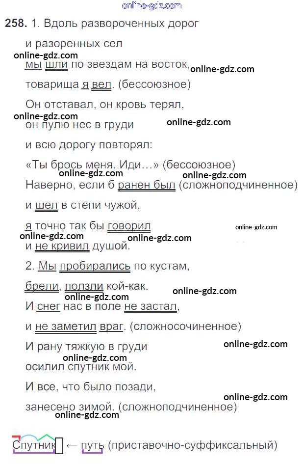 Готовые домашние задания по Русскому языку за 9 класс Учебник Тростенцова, Ладыженская 2014 - Упражнения 258
