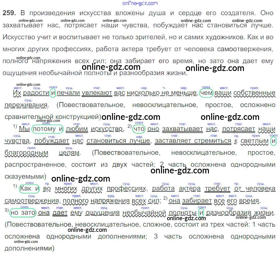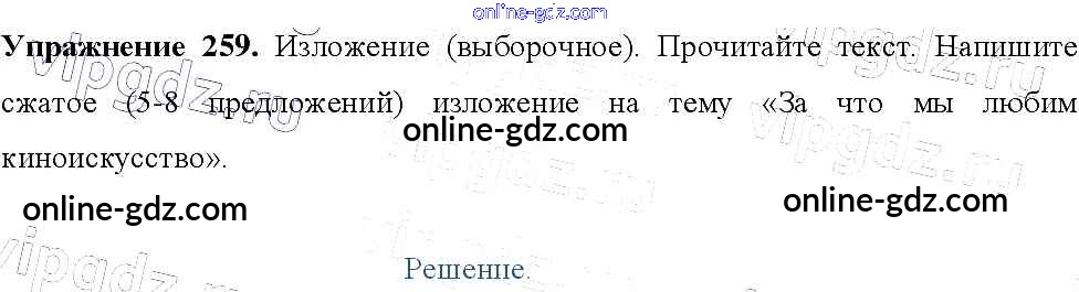 Готовые домашние задания по Русскому языку за 9 класс Учебник Тростенцова, Ладыженская 2014 - Упражнения 259