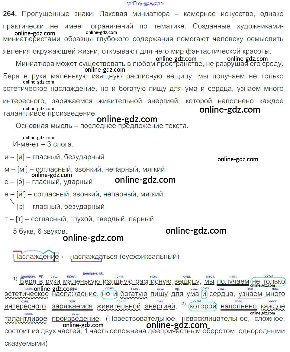 Готовые домашние задания по Русскому языку за 9 класс Учебник Тростенцова, Ладыженская 2014 - Упражнения 264