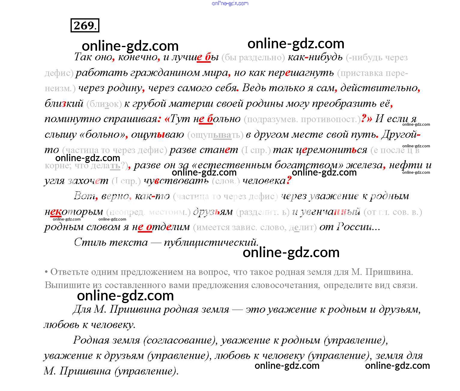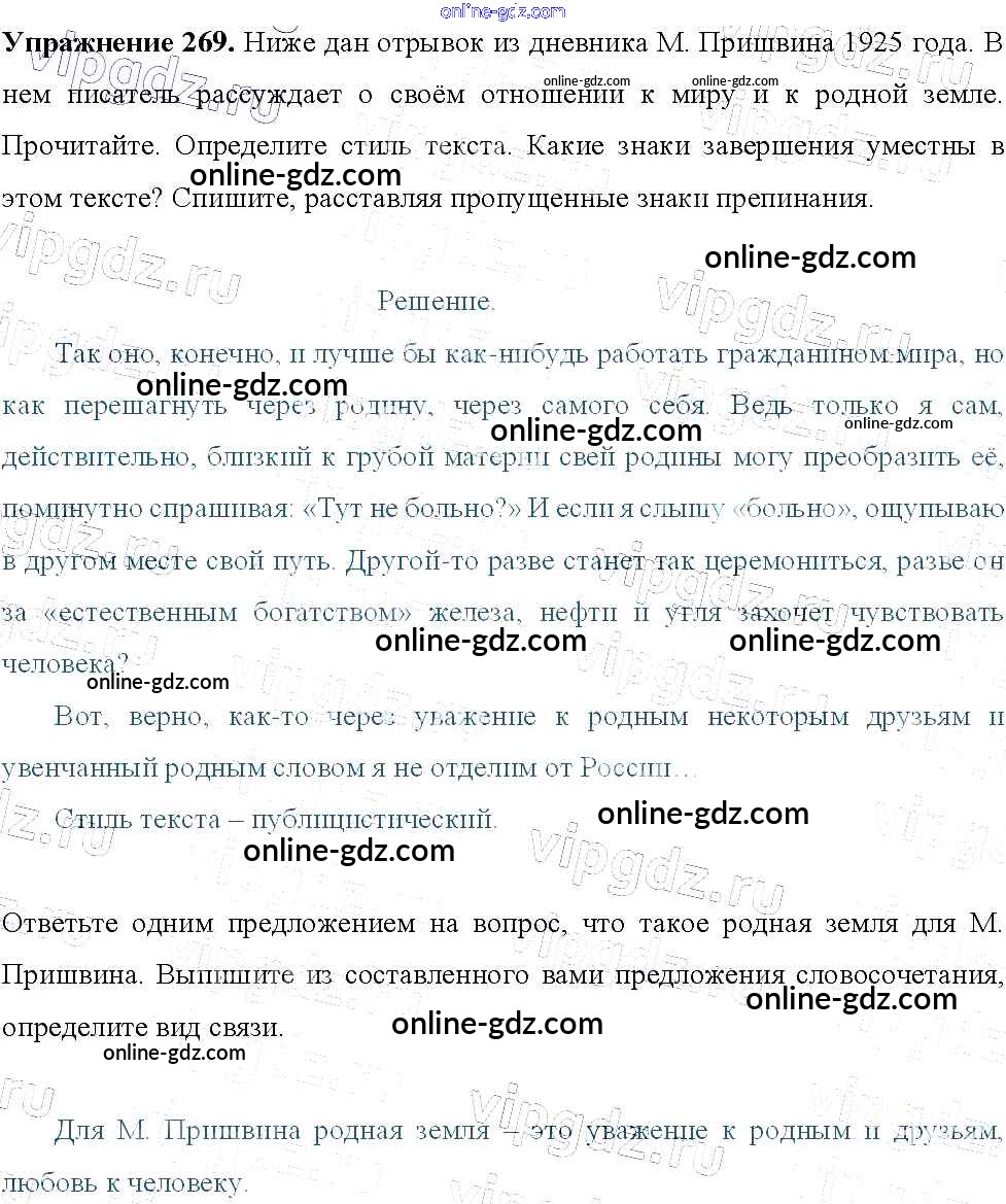 Готовые домашние задания по Русскому языку за 9 класс Учебник Тростенцова, Ладыженская 2014 - Упражнения 269