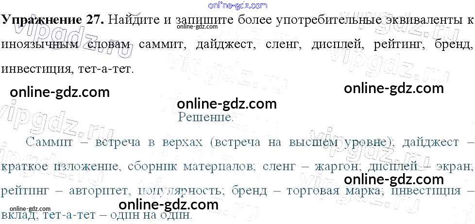 Готовые домашние задания по Русскому языку за 9 класс Учебник Тростенцова, Ладыженская 2014 - Упражнения 27