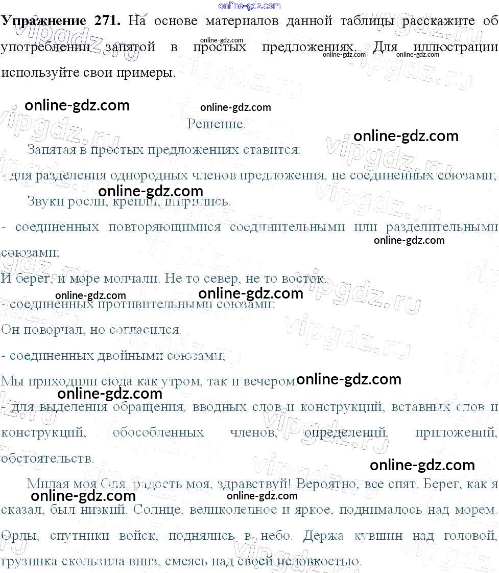Готовые домашние задания по Русскому языку за 9 класс Учебник Тростенцова, Ладыженская 2014 - Упражнения 271