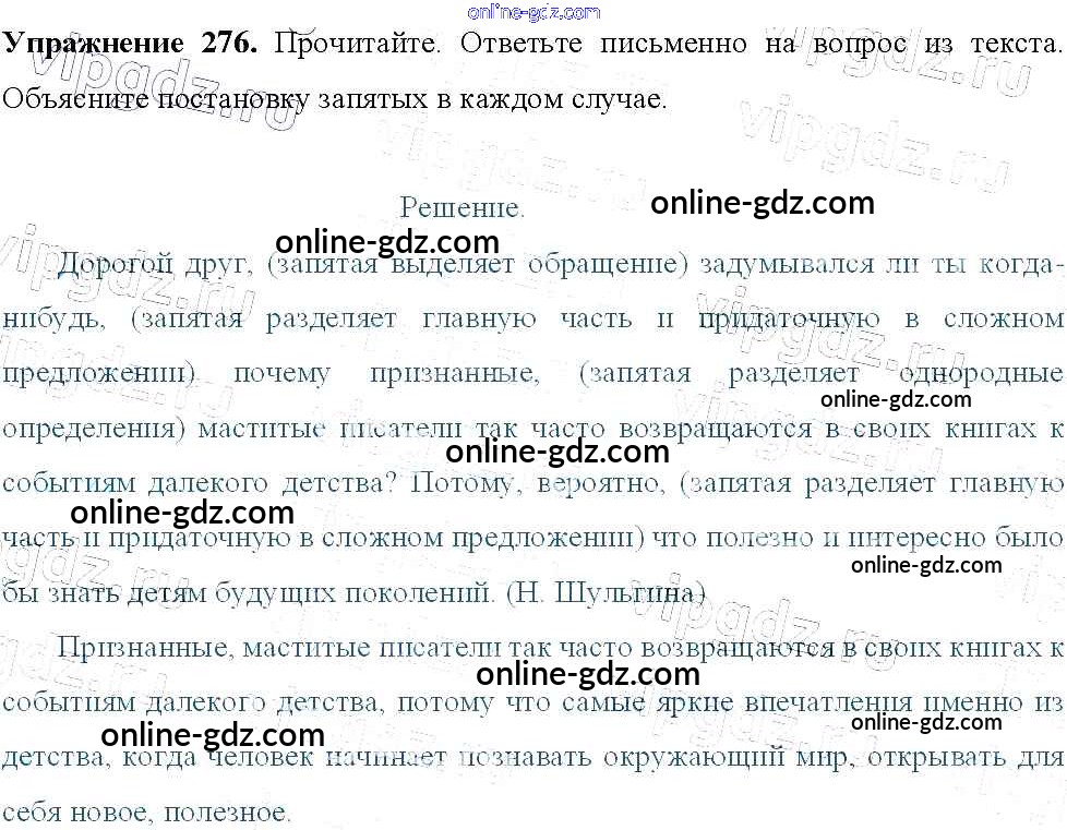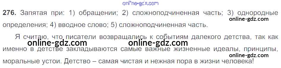 Готовые домашние задания по Русскому языку за 9 класс Учебник Тростенцова, Ладыженская 2014 - Упражнения 276