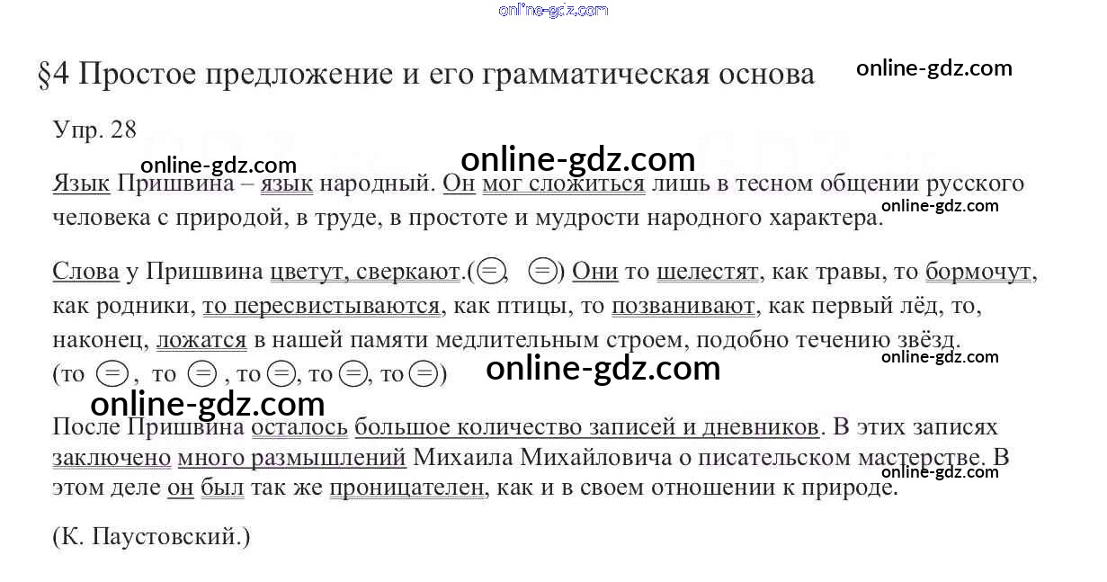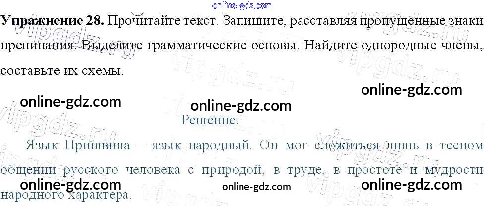 Готовые домашние задания по Русскому языку за 9 класс Учебник Тростенцова, Ладыженская 2014 - Упражнения 28
