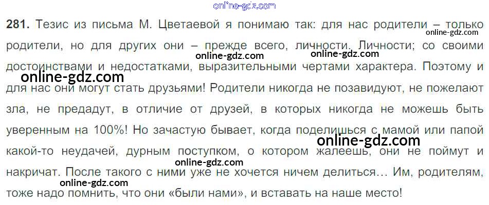 Готовые домашние задания по Русскому языку за 9 класс Учебник Тростенцова, Ладыженская 2014 - Упражнения 281