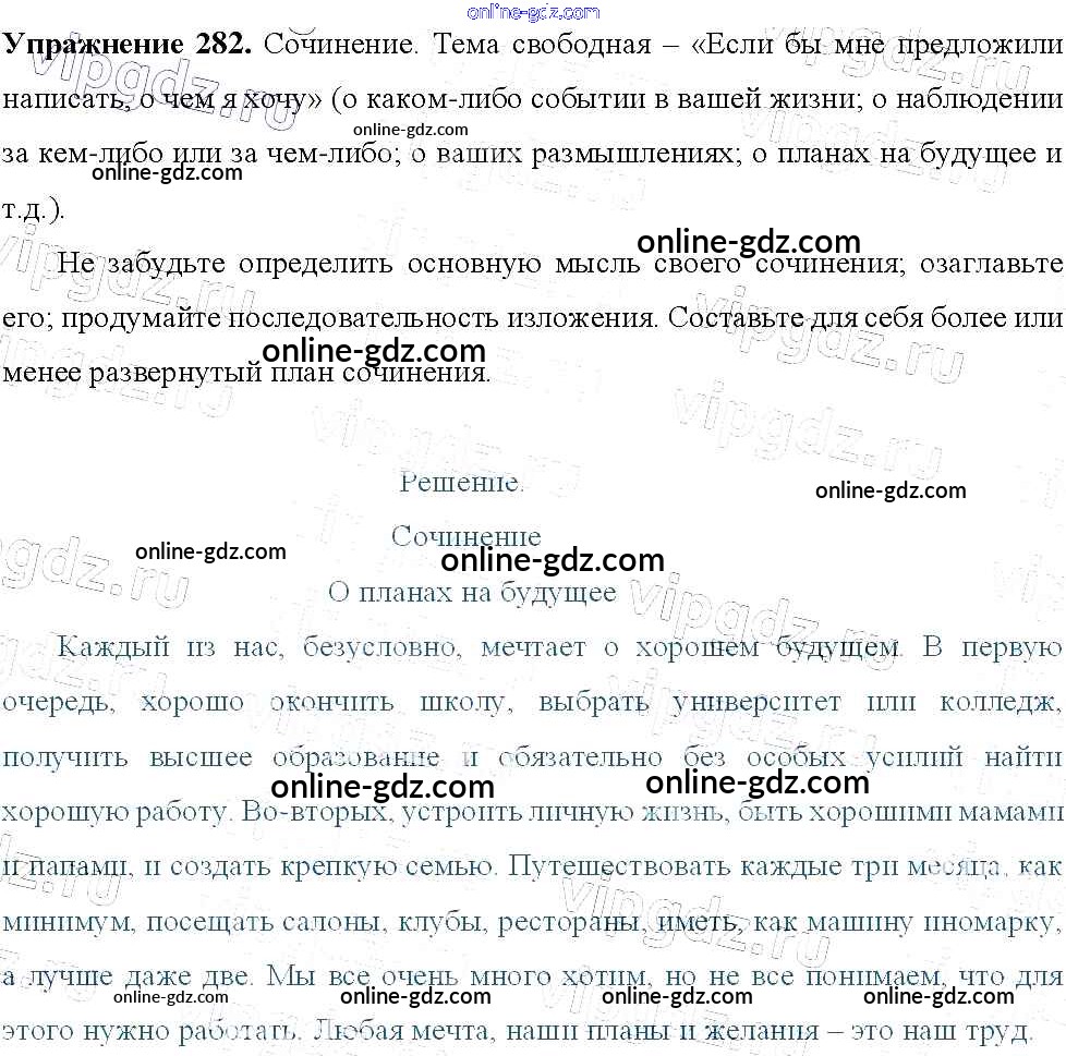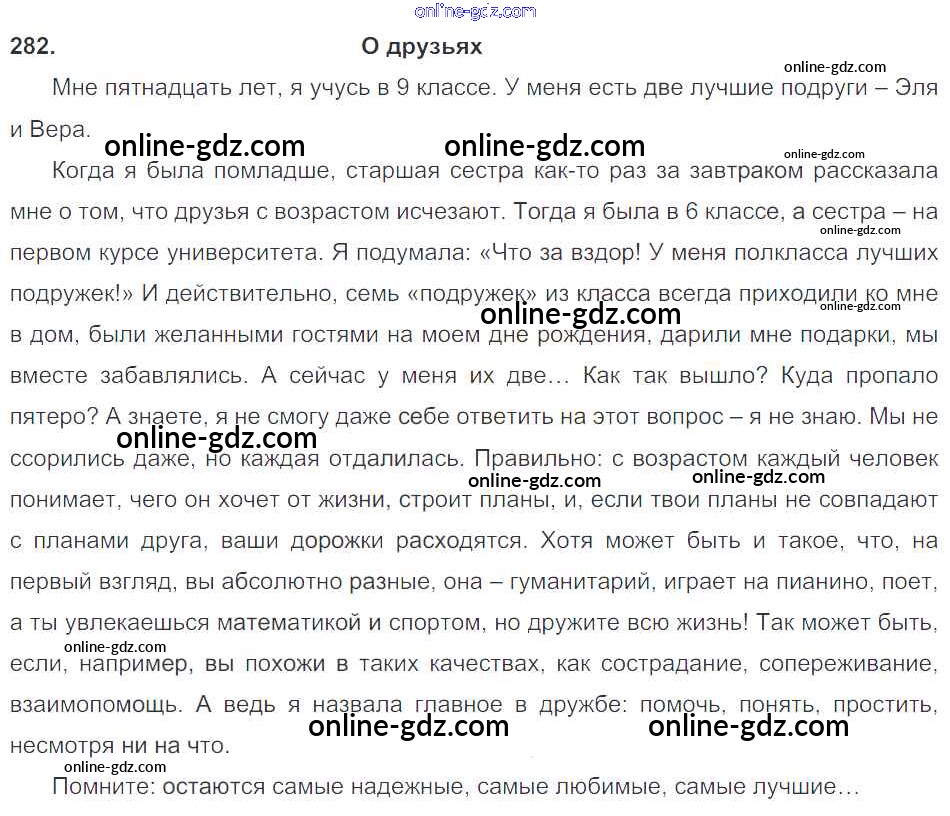 Готовые домашние задания по Русскому языку за 9 класс Учебник Тростенцова, Ладыженская 2014 - Упражнения 282