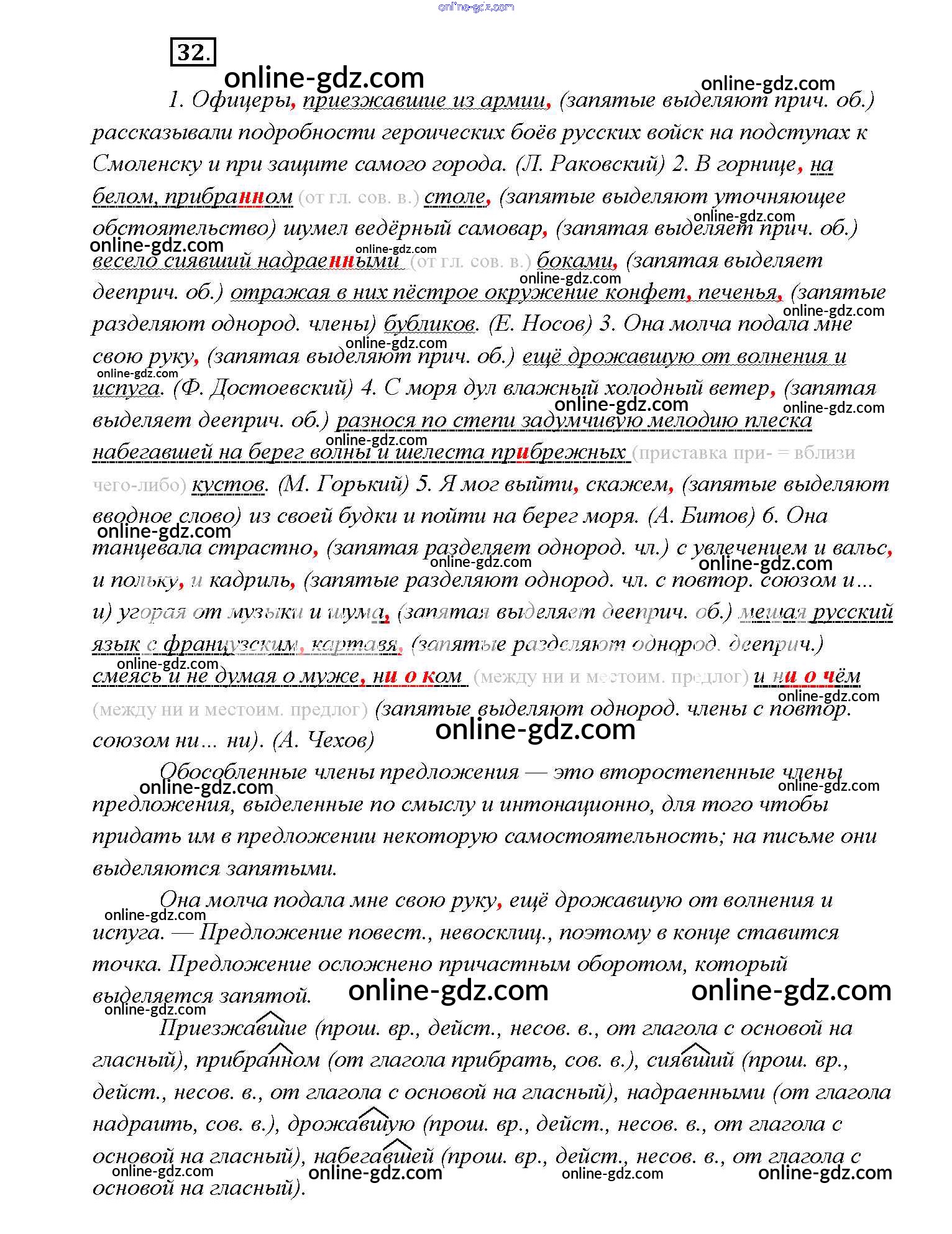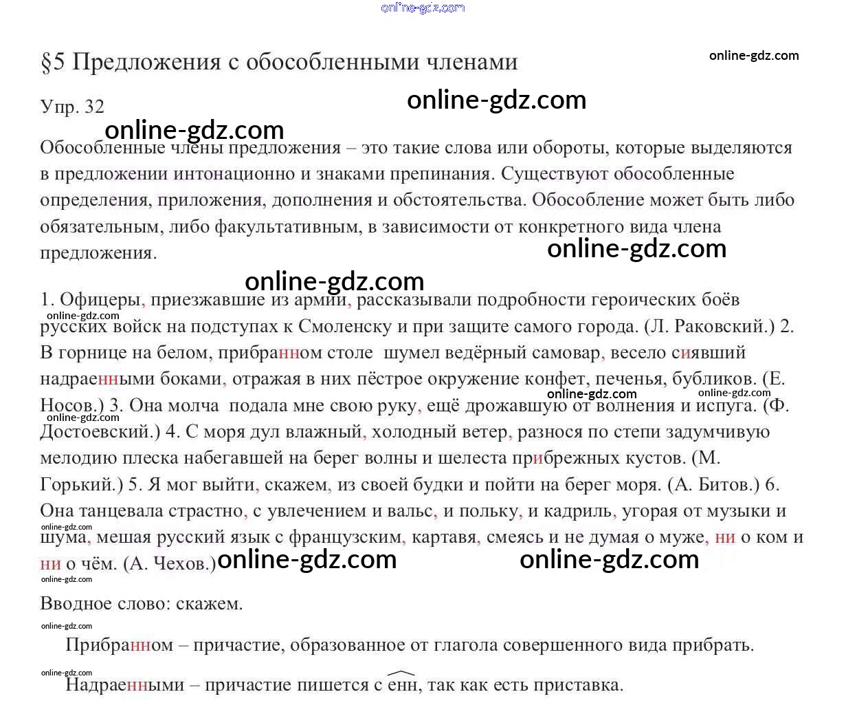 Готовые домашние задания по Русскому языку за 9 класс Учебник Тростенцова, Ладыженская 2014 - Упражнения 32