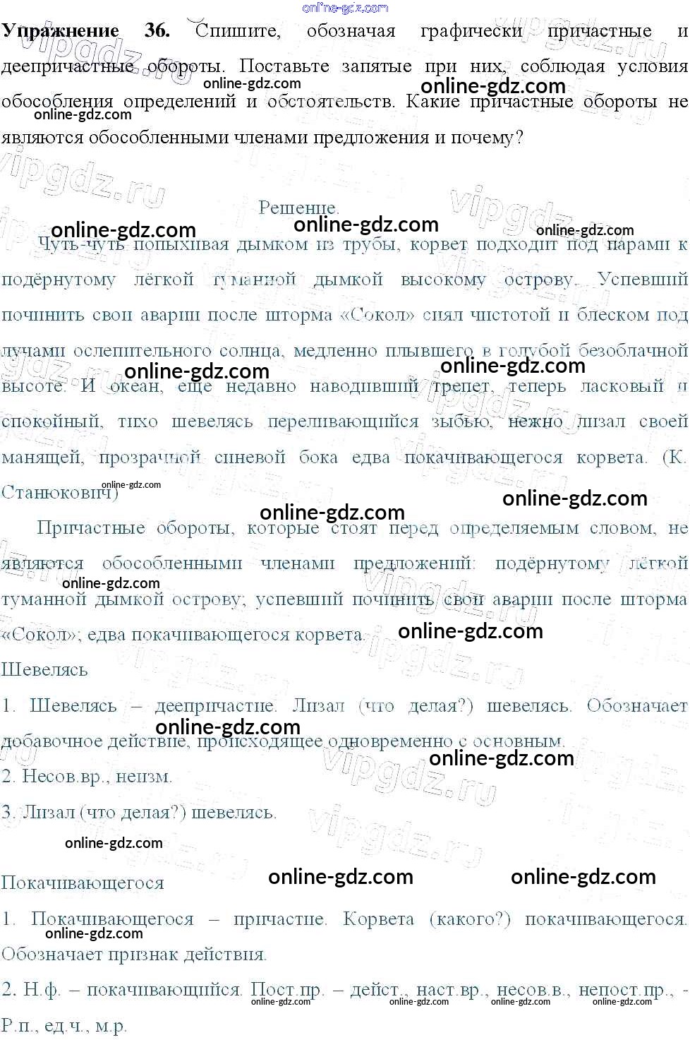 Готовые домашние задания по Русскому языку за 9 класс Учебник Тростенцова, Ладыженская 2014 - Упражнения 36