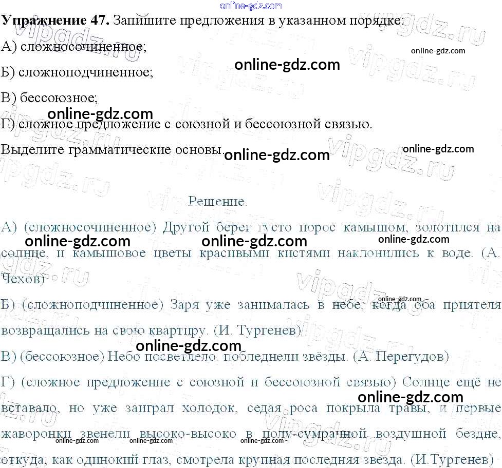 Готовые домашние задания по Русскому языку за 9 класс Учебник Тростенцова, Ладыженская 2014 - Упражнения 47