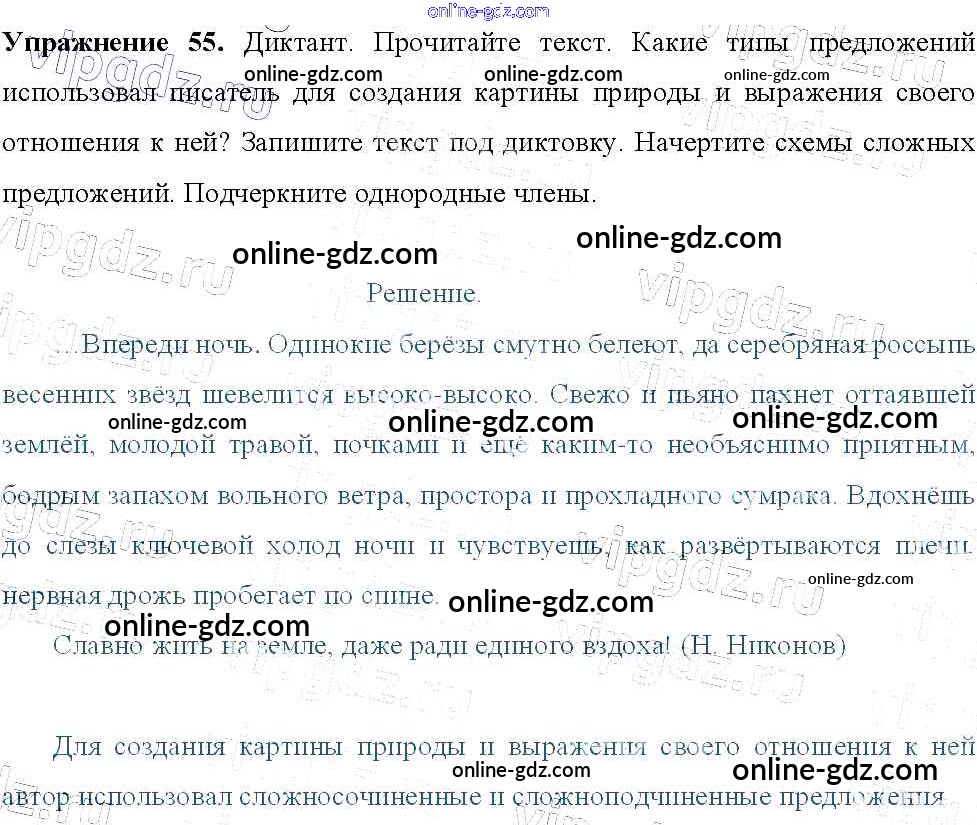 Готовые домашние задания по Русскому языку за 9 класс Учебник Тростенцова, Ладыженская 2014 - Упражнения 55