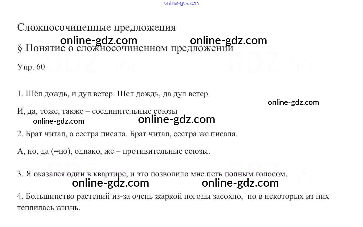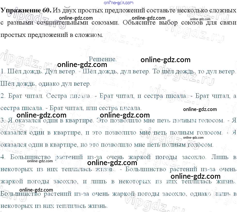 Готовые домашние задания по Русскому языку за 9 класс Учебник Тростенцова, Ладыженская 2014 - Упражнения 60