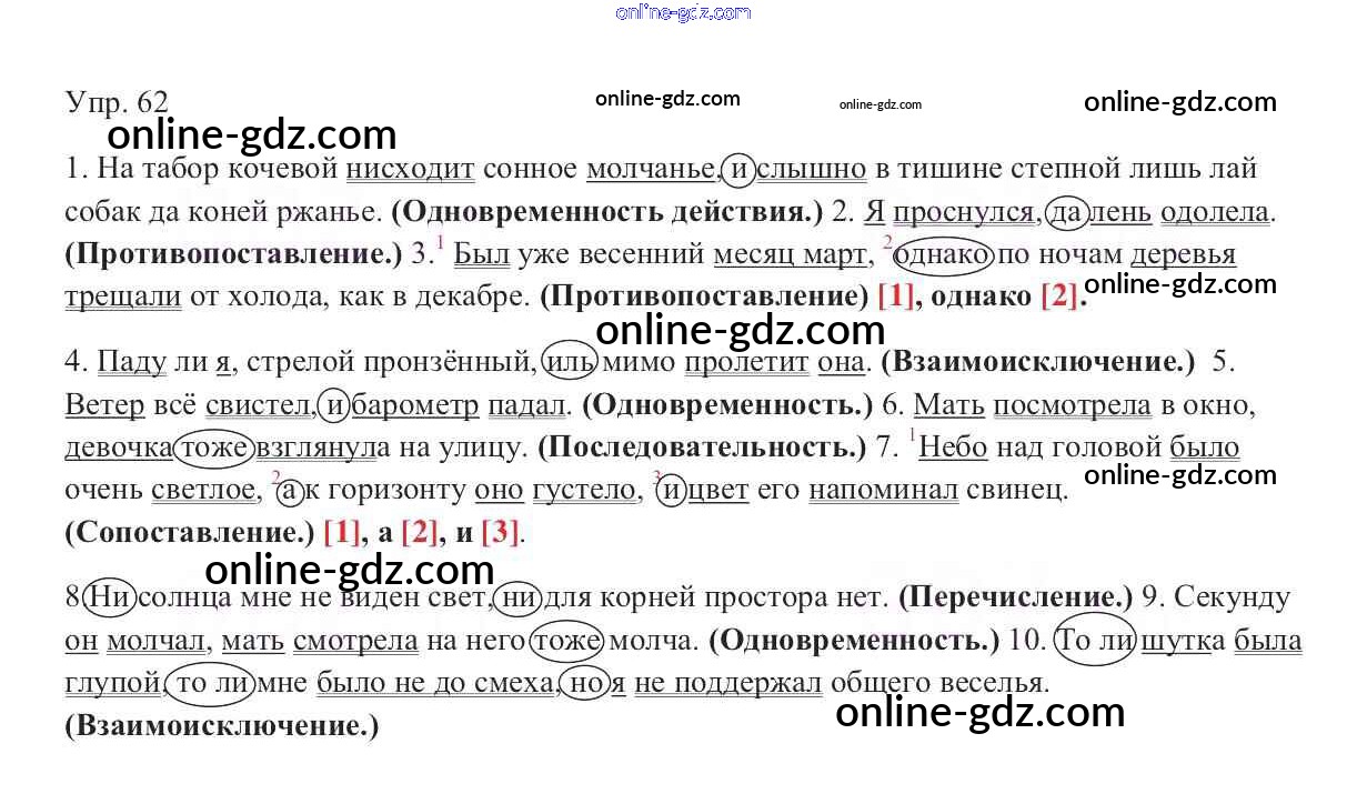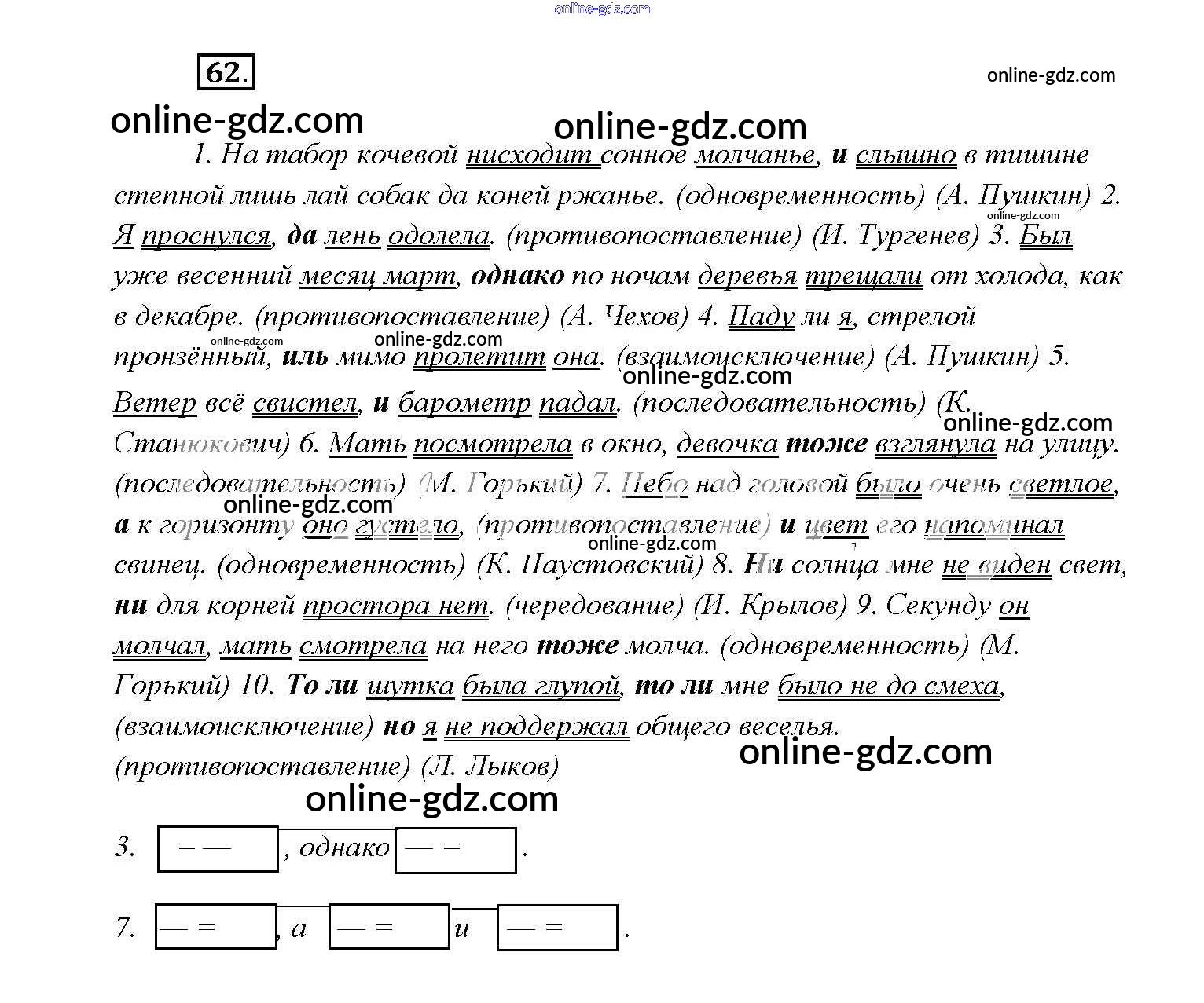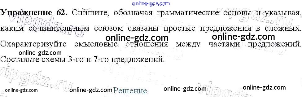 Готовые домашние задания по Русскому языку за 9 класс Учебник Тростенцова, Ладыженская 2014 - Упражнения 62
