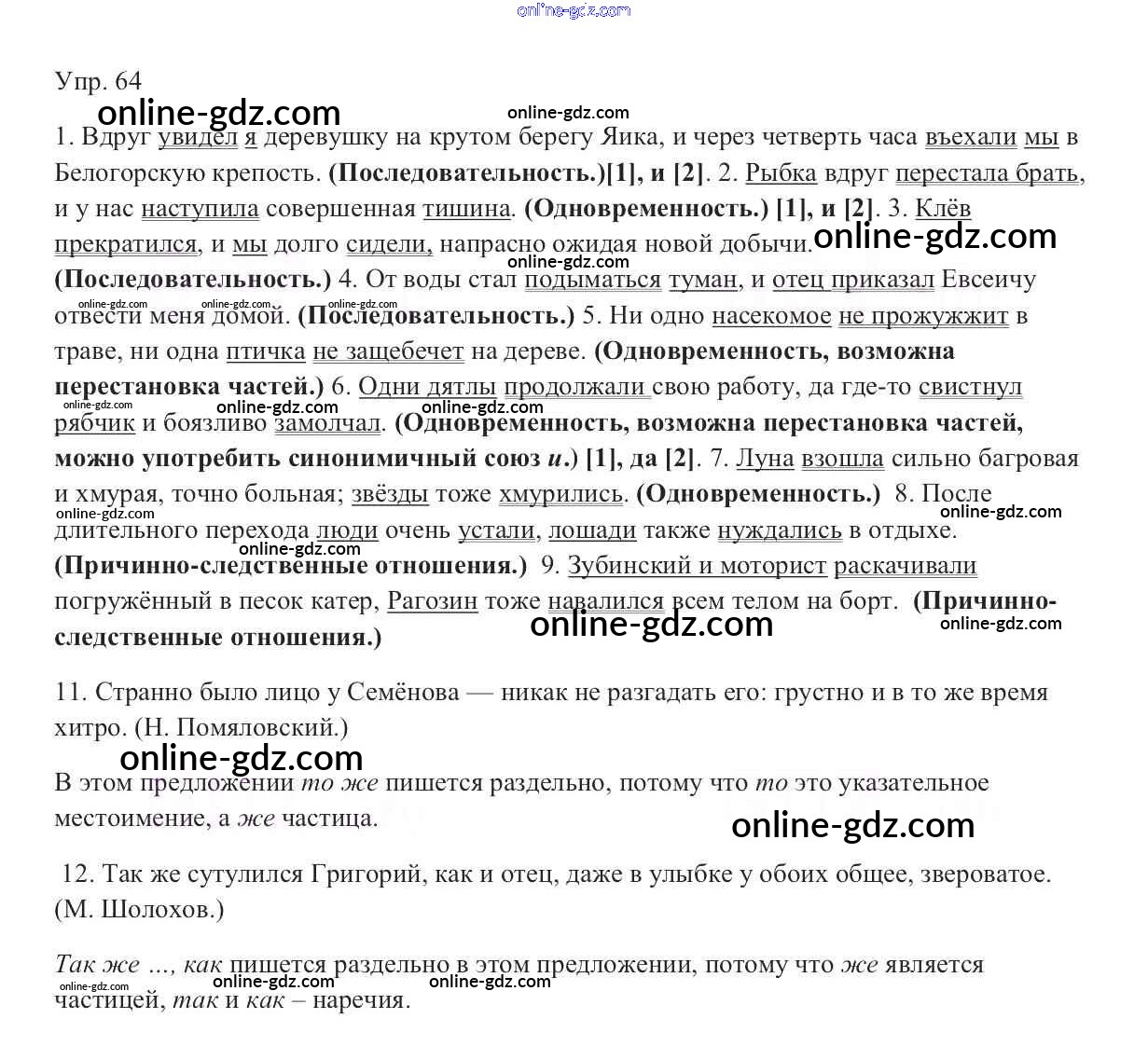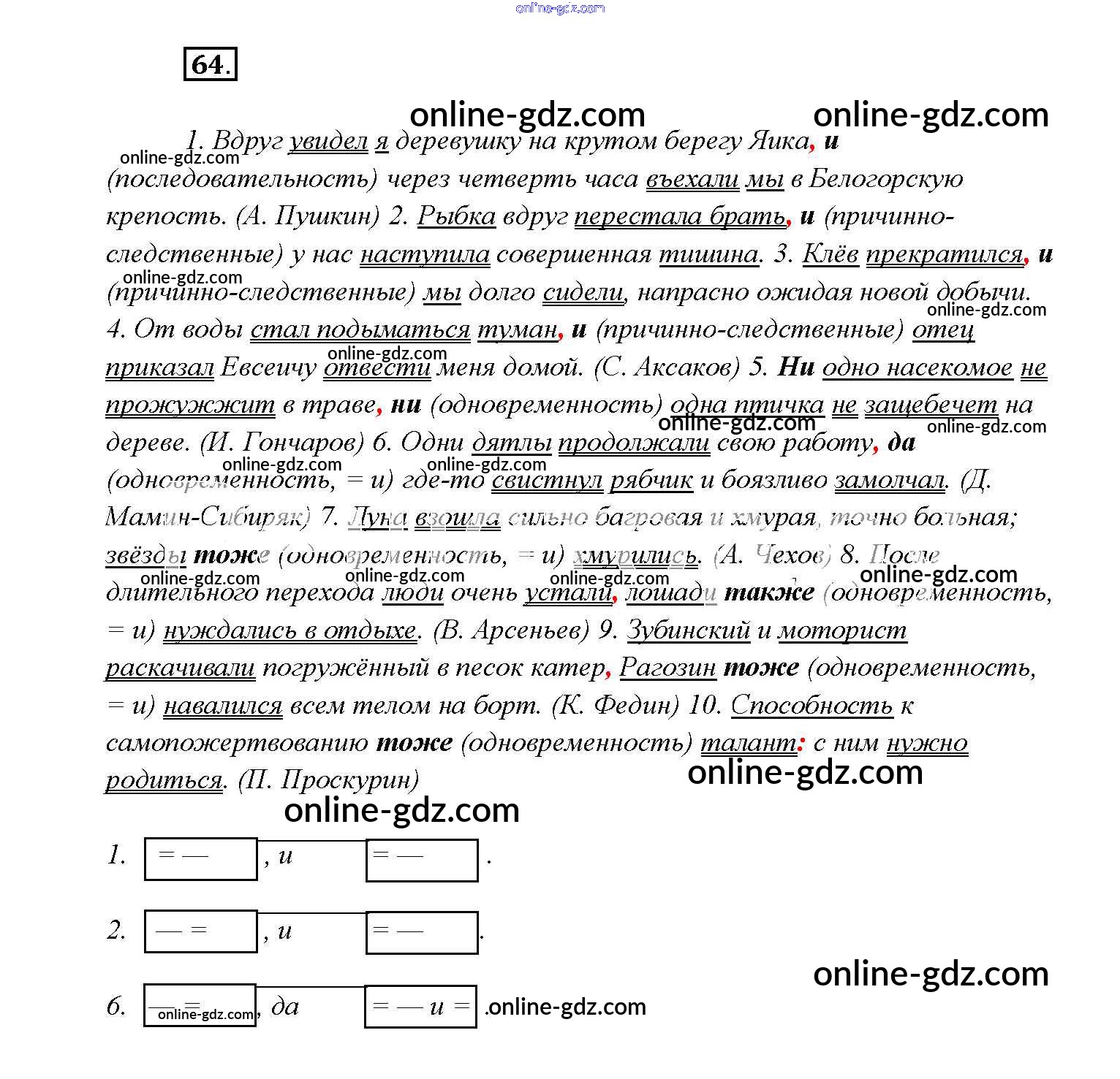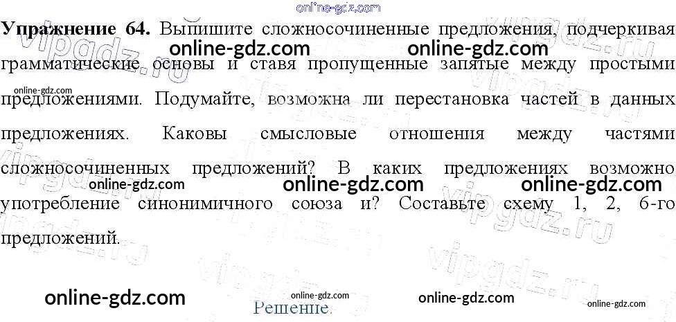 Готовые домашние задания по Русскому языку за 9 класс Учебник Тростенцова, Ладыженская 2014 - Упражнения 64