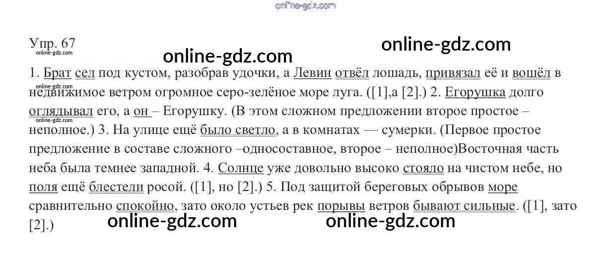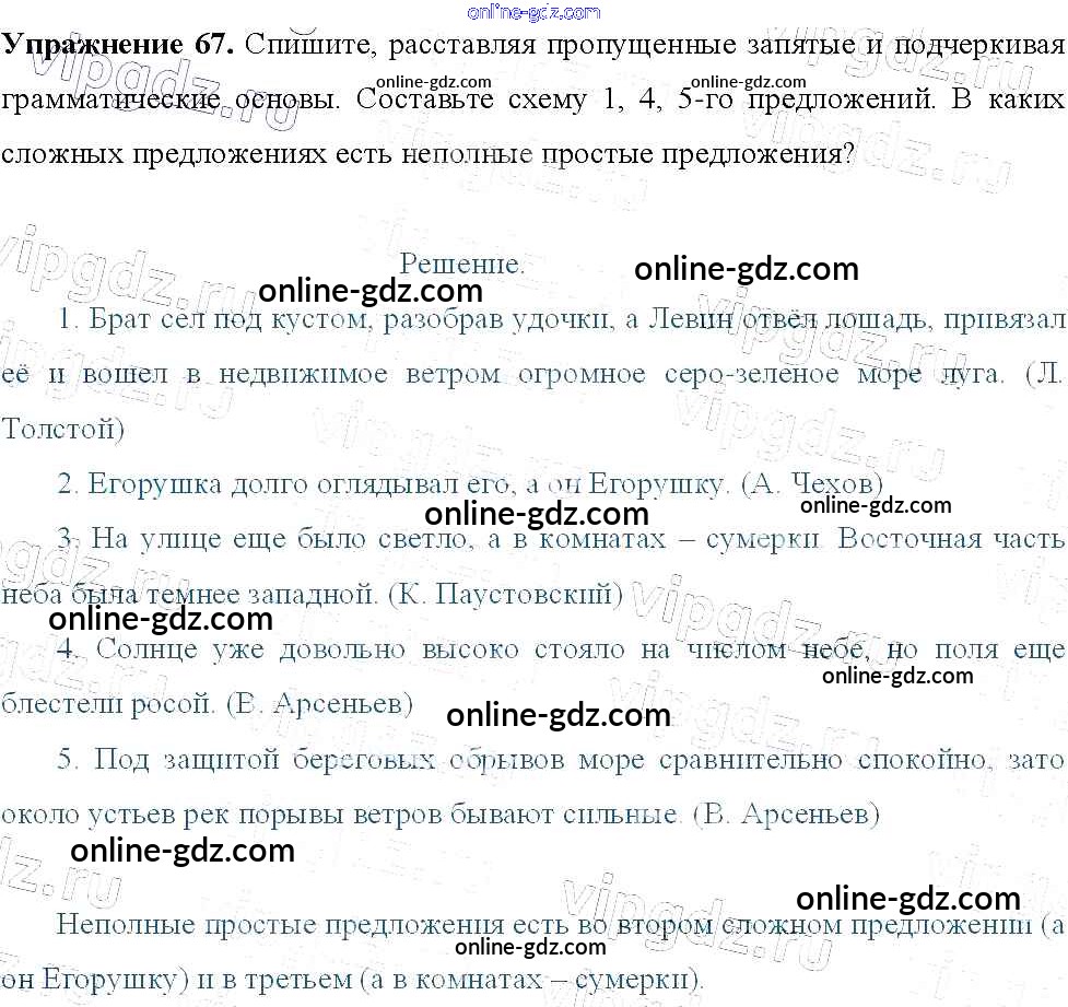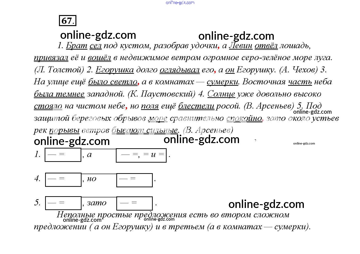 Готовые домашние задания по Русскому языку за 9 класс Учебник Тростенцова, Ладыженская 2014 - Упражнения 67