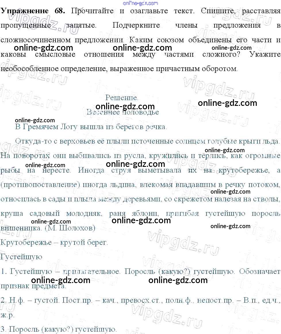 Готовые домашние задания по Русскому языку за 9 класс Учебник Тростенцова, Ладыженская 2014 - Упражнения 68
