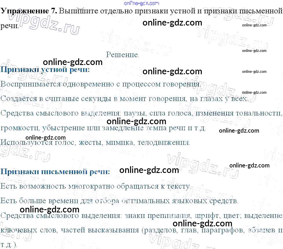 Готовые домашние задания по Русскому языку за 9 класс Учебник Тростенцова, Ладыженская 2014 - Упражнения 7