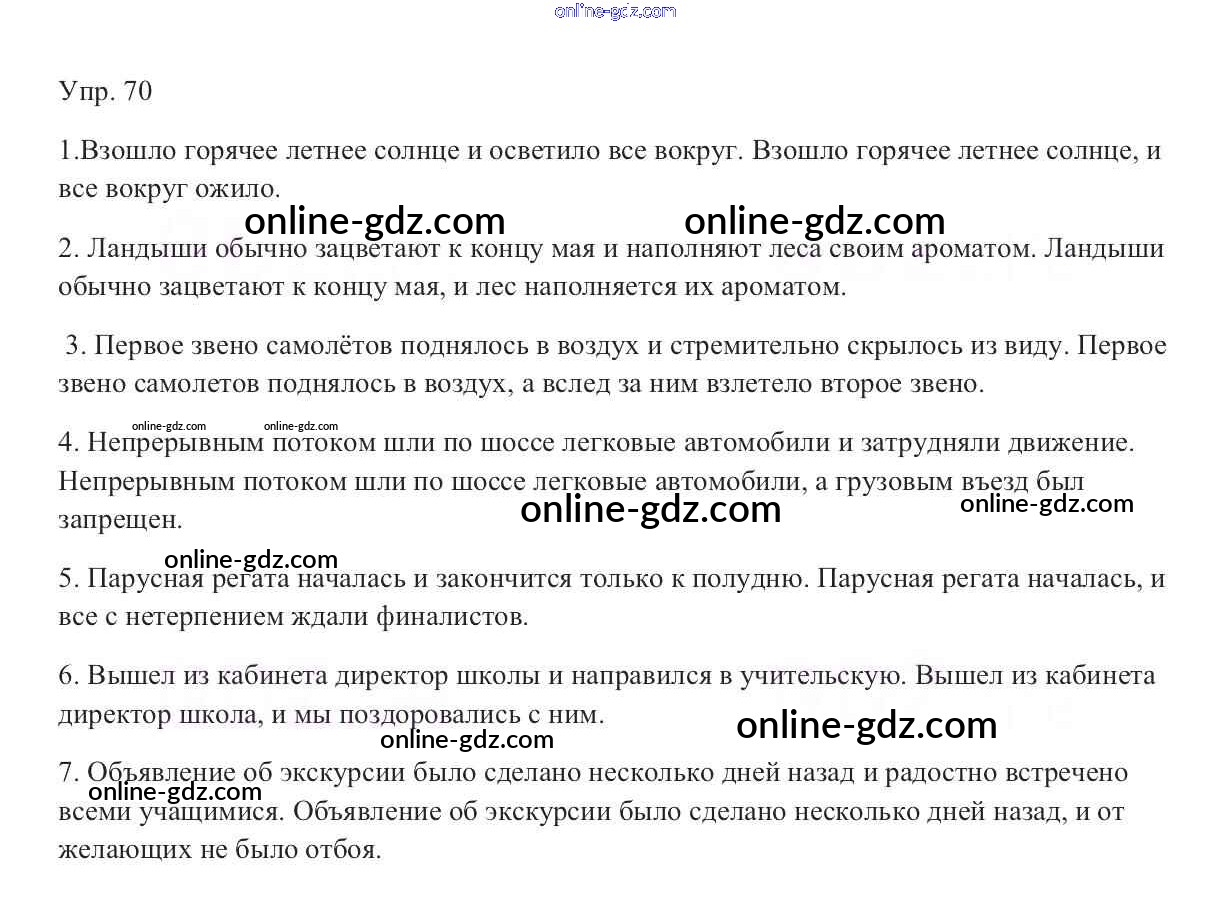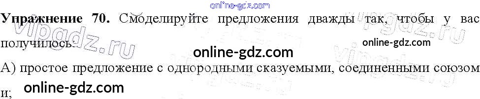 Готовые домашние задания по Русскому языку за 9 класс Учебник Тростенцова, Ладыженская 2014 - Упражнения 70