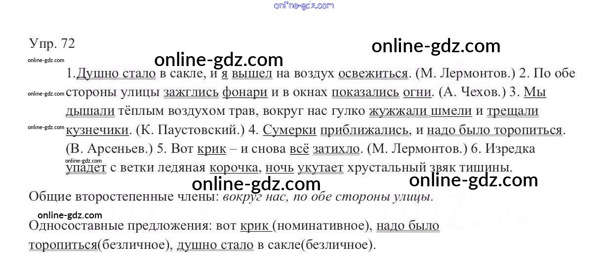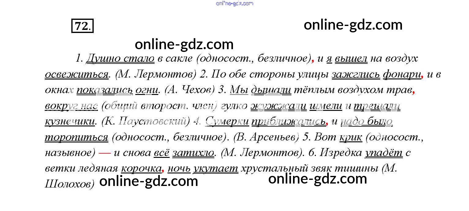 Готовые домашние задания по Русскому языку за 9 класс Учебник Тростенцова, Ладыженская 2014 - Упражнения 72