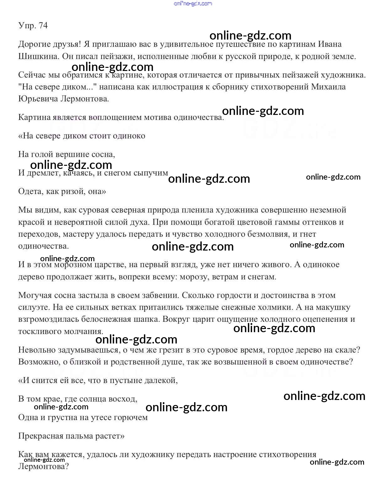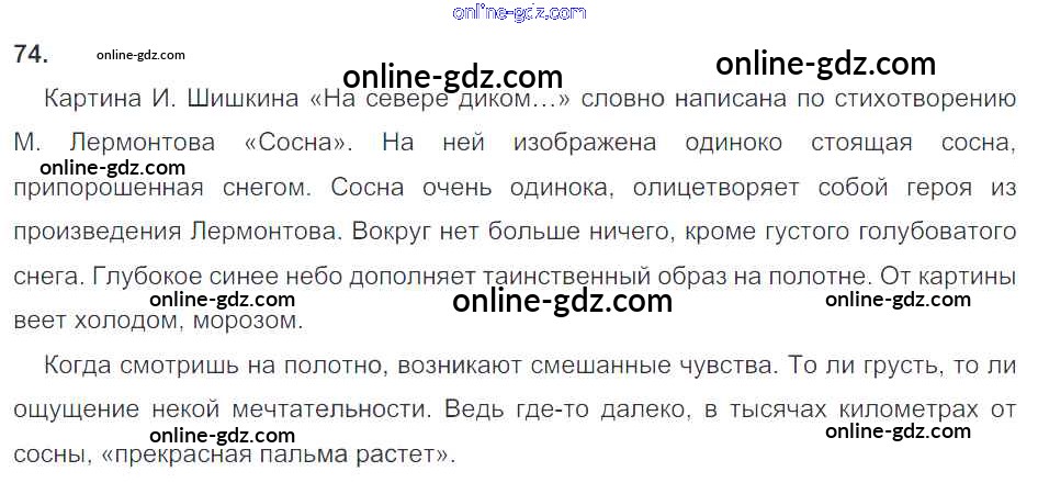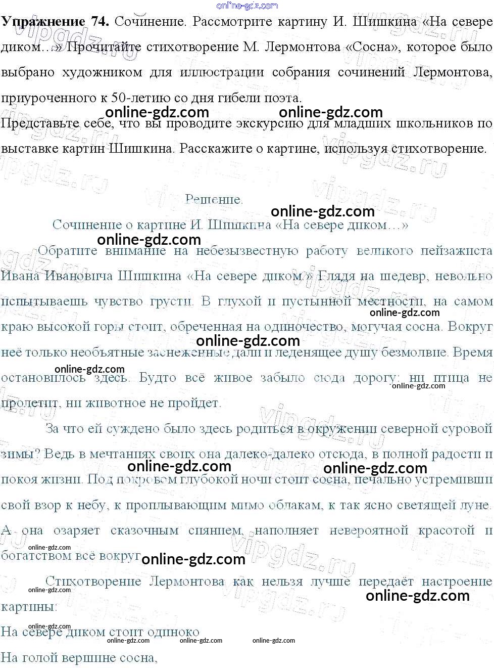 Готовые домашние задания по Русскому языку за 9 класс Учебник Тростенцова, Ладыженская 2014 - Упражнения 74