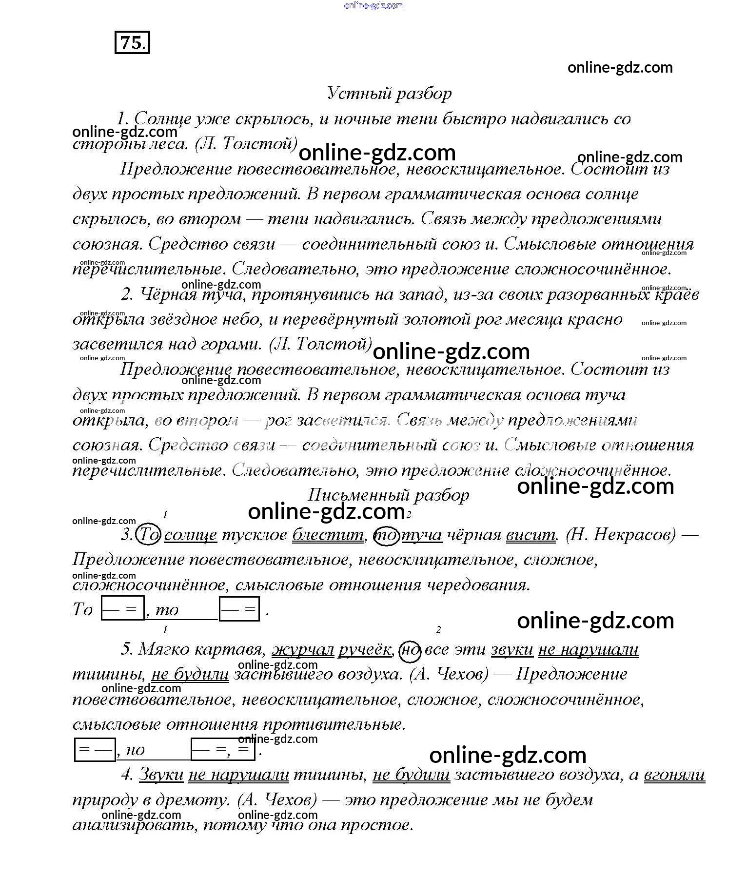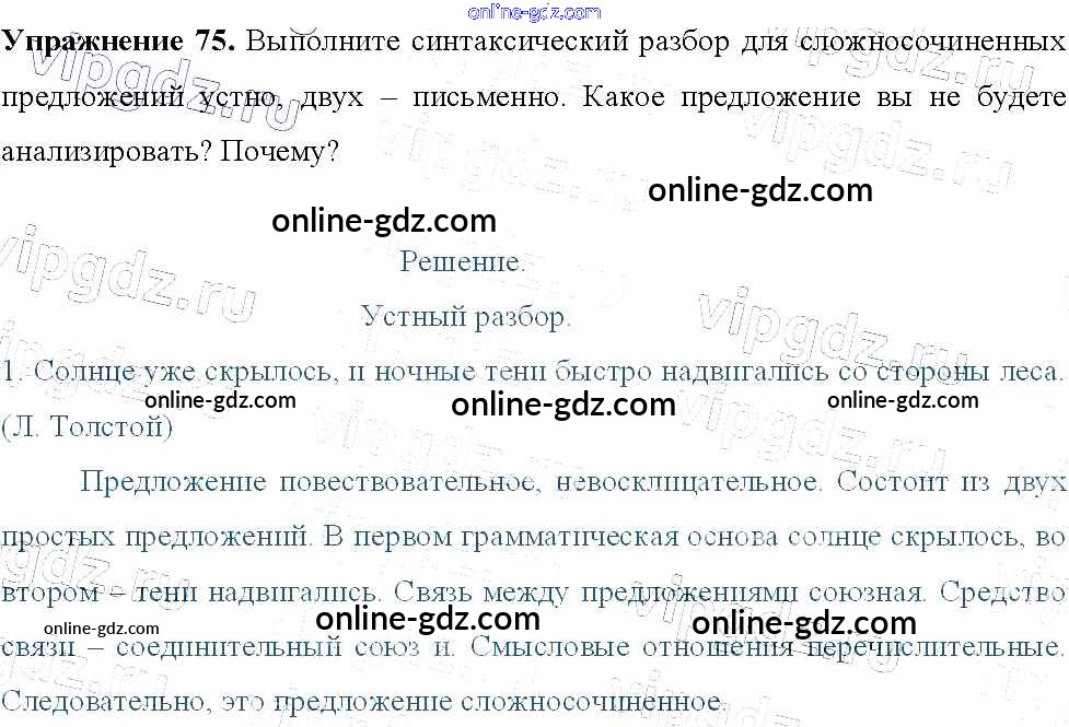 Готовые домашние задания по Русскому языку за 9 класс Учебник Тростенцова, Ладыженская 2014 - Упражнения 75
