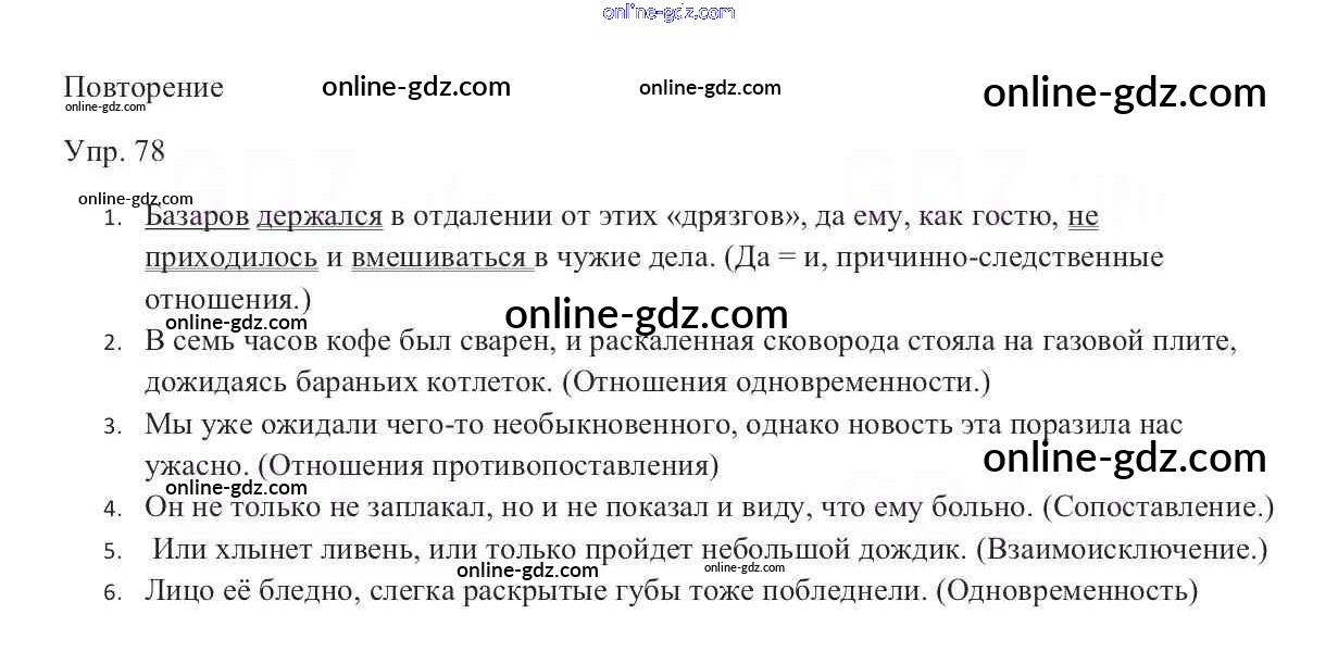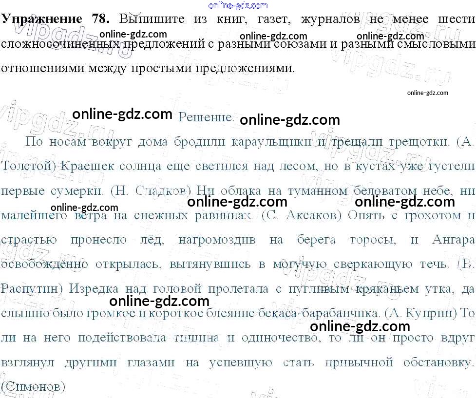 Готовые домашние задания по Русскому языку за 9 класс Учебник Тростенцова, Ладыженская 2014 - Упражнения 78