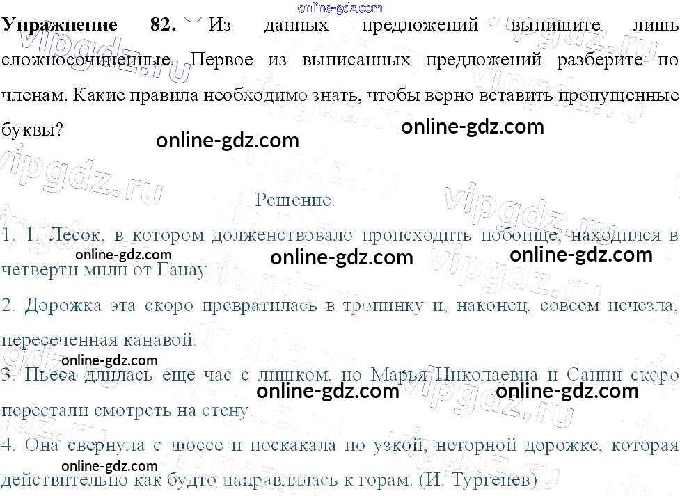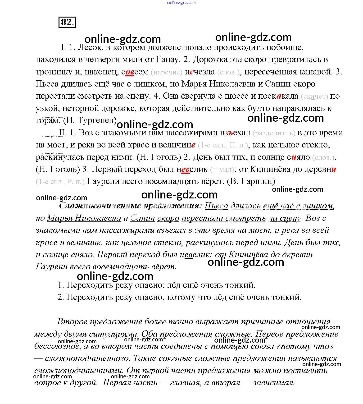Готовые домашние задания по Русскому языку за 9 класс Учебник Тростенцова, Ладыженская 2014 - Упражнения 82