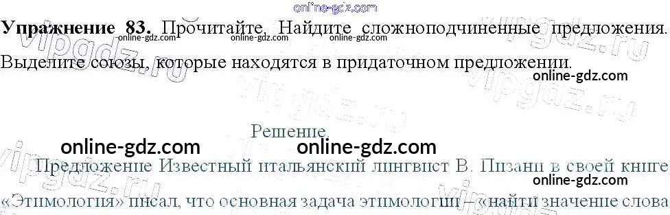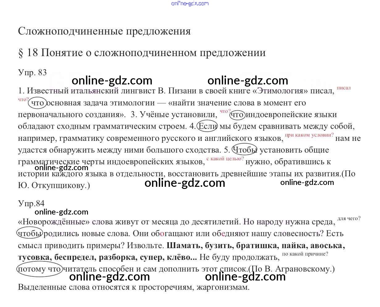 Готовые домашние задания по Русскому языку за 9 класс Учебник Тростенцова, Ладыженская 2014 - Упражнения 83