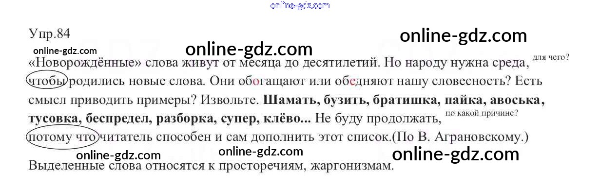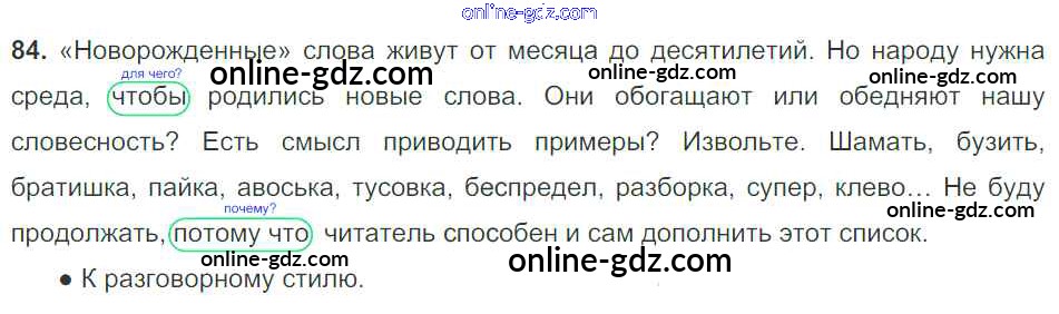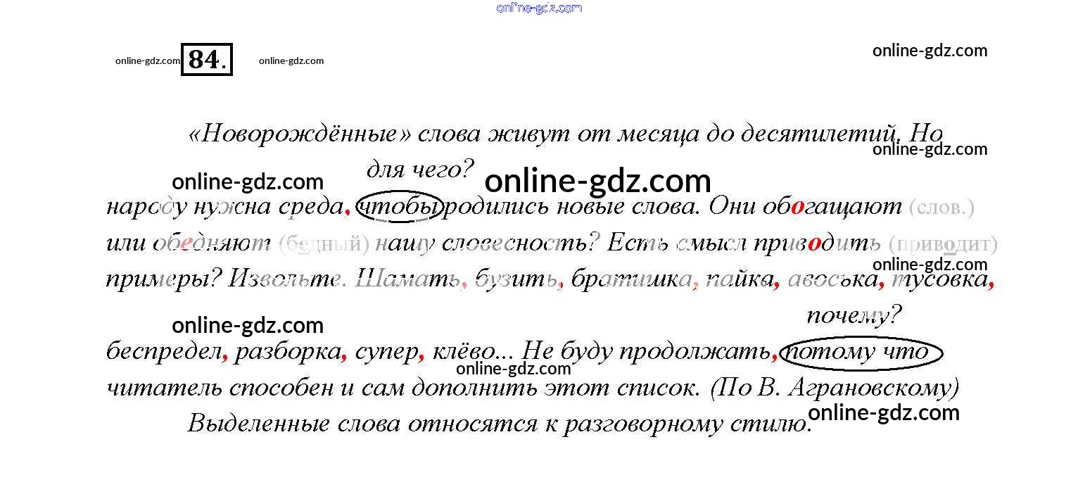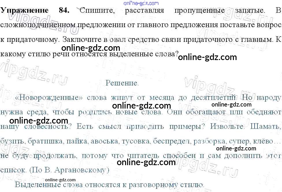 Готовые домашние задания по Русскому языку за 9 класс Учебник Тростенцова, Ладыженская 2014 - Упражнения 84