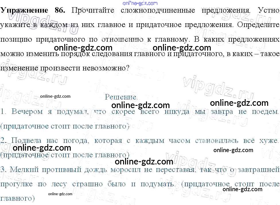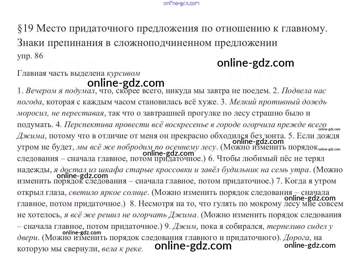 Готовые домашние задания по Русскому языку за 9 класс Учебник Тростенцова, Ладыженская 2014 - Упражнения 86