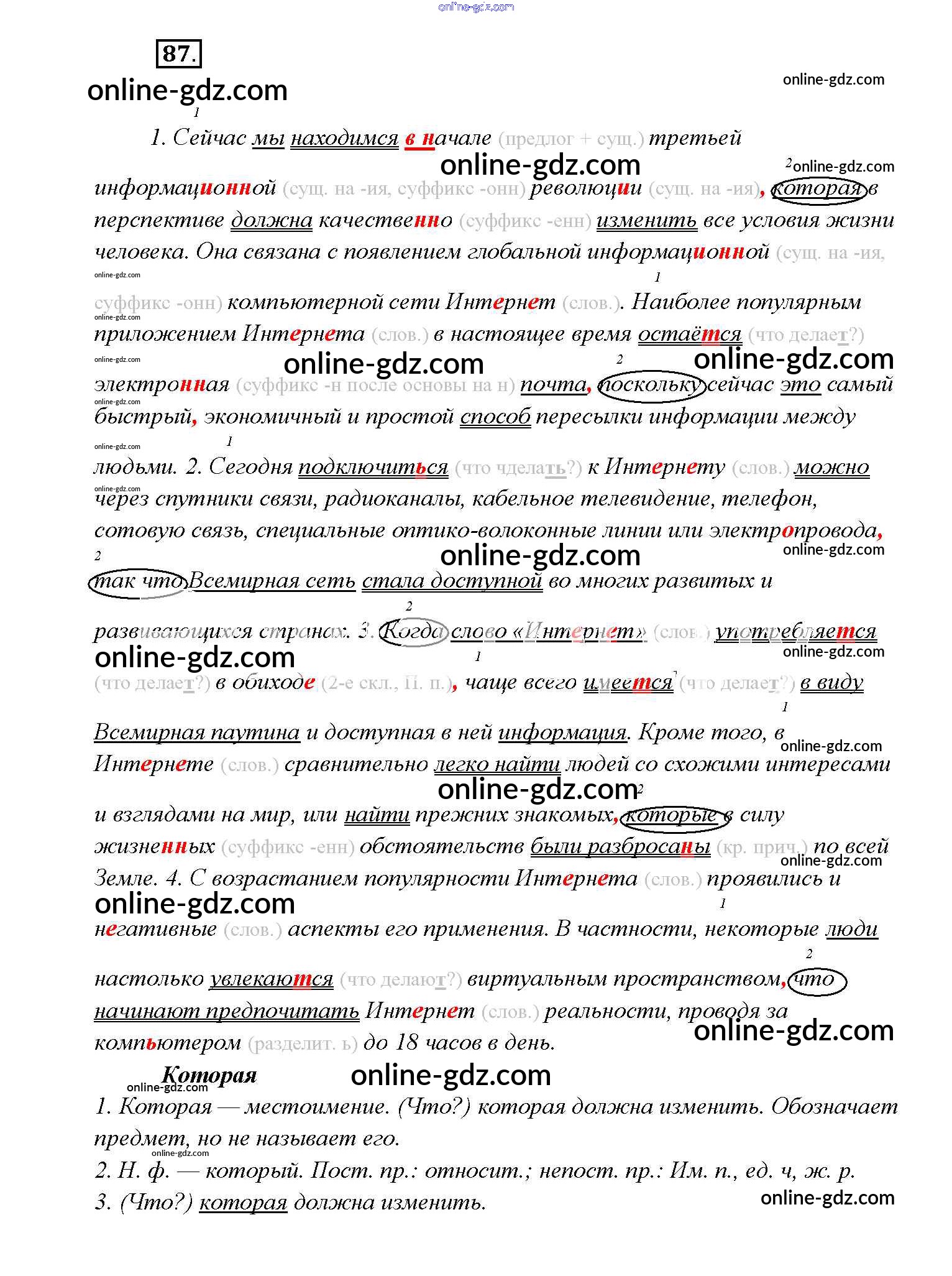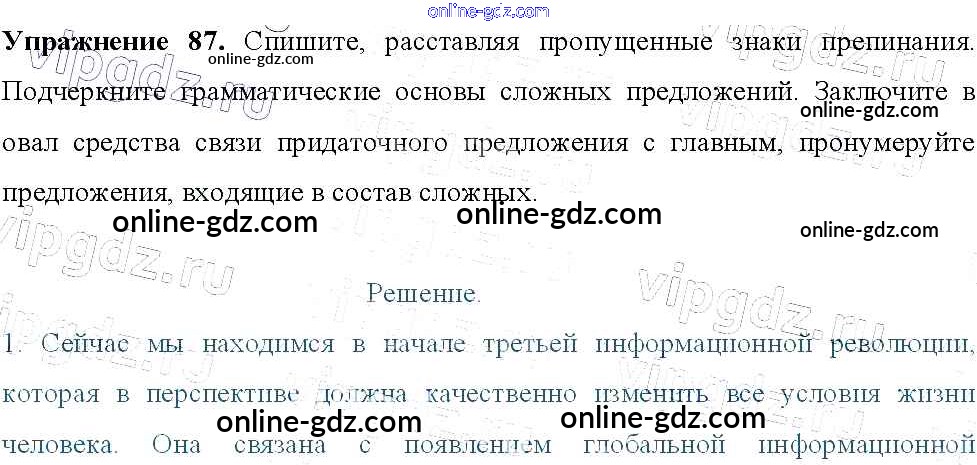Готовые домашние задания по Русскому языку за 9 класс Учебник Тростенцова, Ладыженская 2014 - Упражнения 87