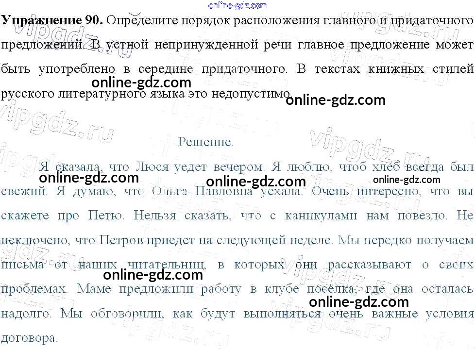 Готовые домашние задания по Русскому языку за 9 класс Учебник Тростенцова, Ладыженская 2014 - Упражнения 90