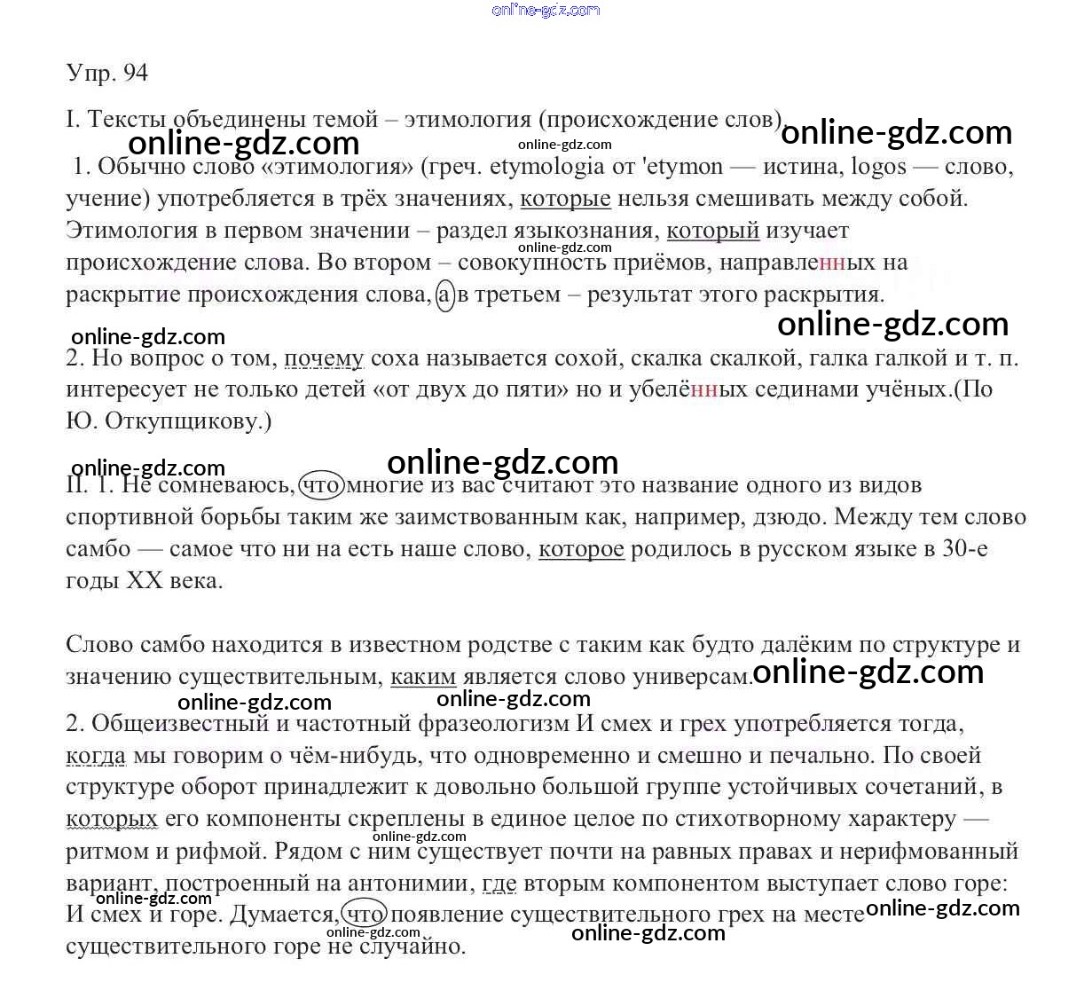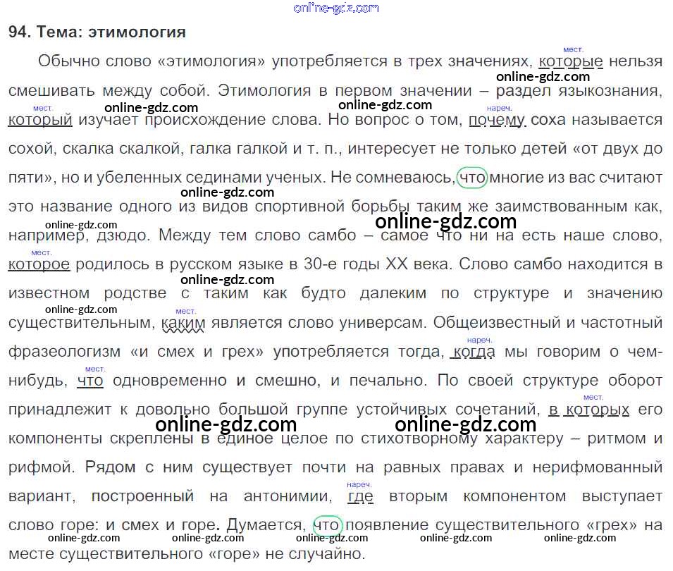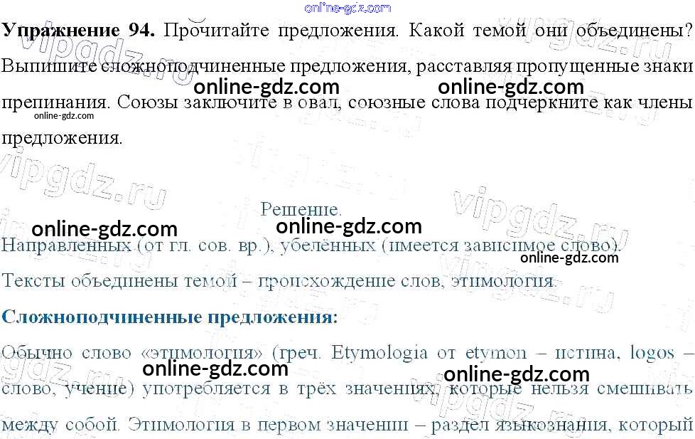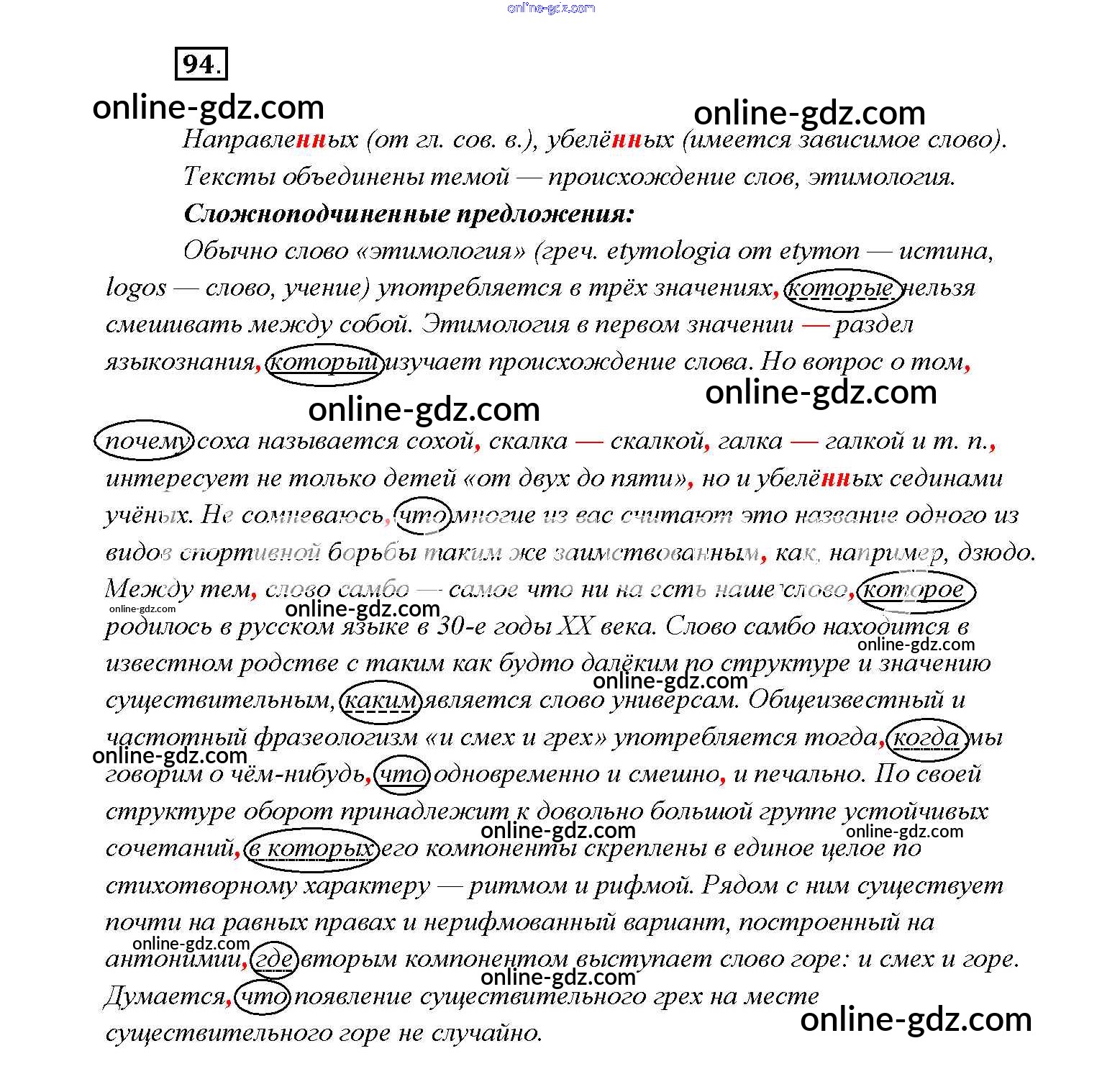 Готовые домашние задания по Русскому языку за 9 класс Учебник Тростенцова, Ладыженская 2014 - Упражнения 94