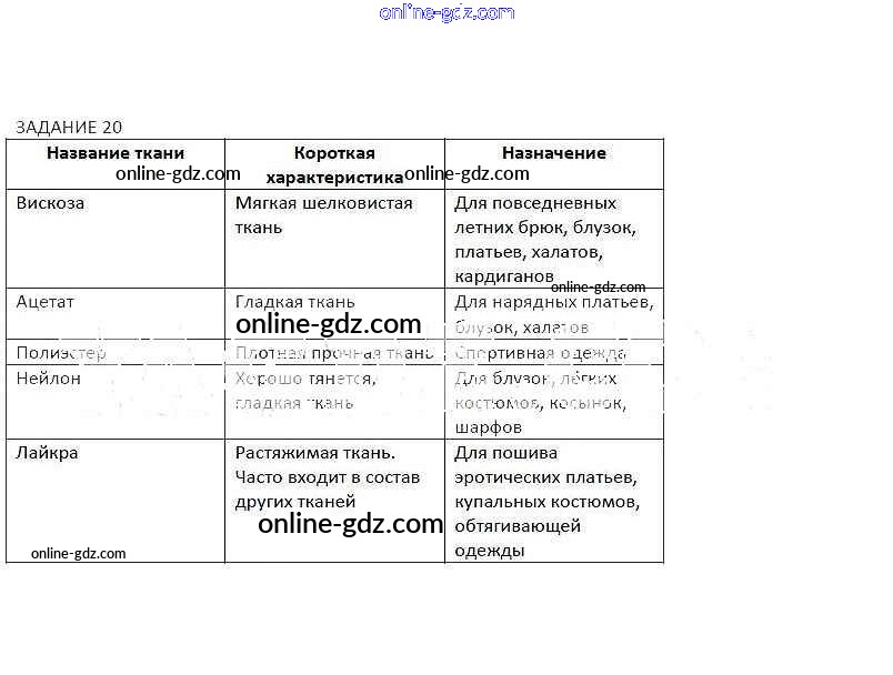 Готовые домашние задания по Технологии за 7 класс Рабочая тетрадь Синица 2014 - Задания 20