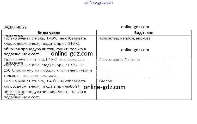 Готовые домашние задания по Технологии за 7 класс Рабочая тетрадь Синица 2014 - Задания 22