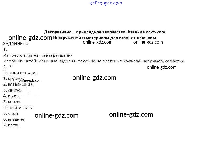 Готовые домашние задания по Технологии за 7 класс Рабочая тетрадь Синица 2014 - Задания 45