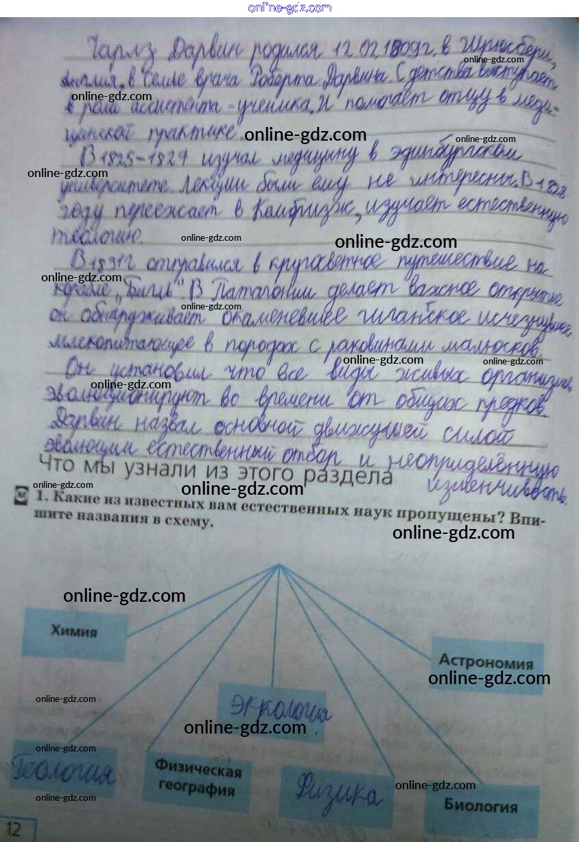 Готовые домашние задания по Естествознанию за 5 класс Рабочая тетрадь Плешаков, Сонин Вертикаль 2015 - Страницы 12